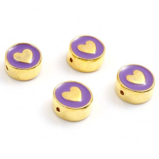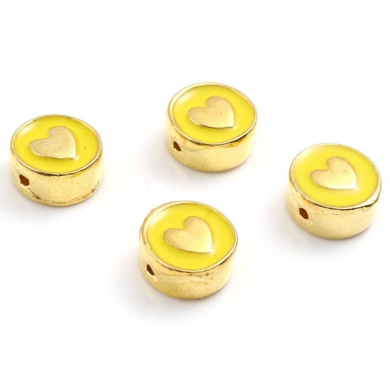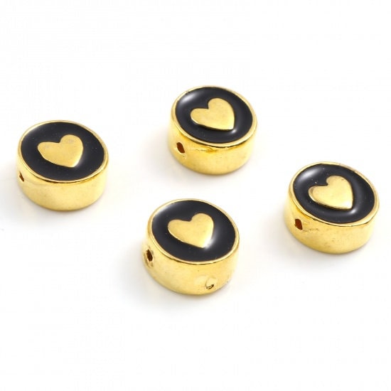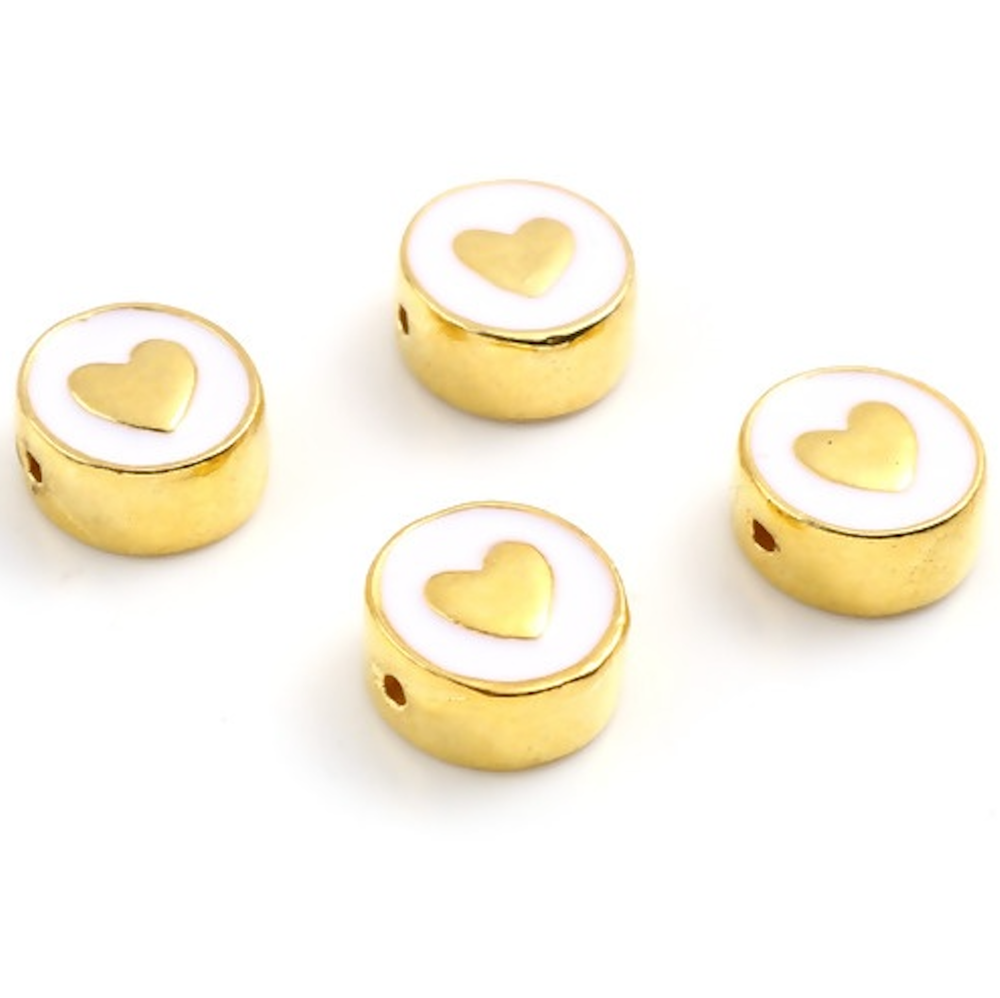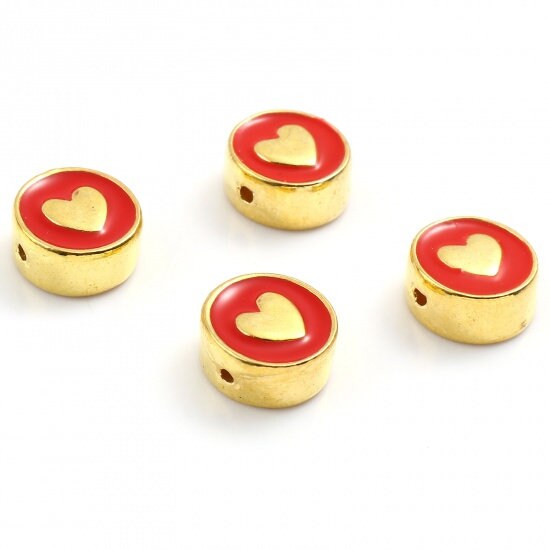 10MM Gold Heart Enamel Filled Flat Round Charm