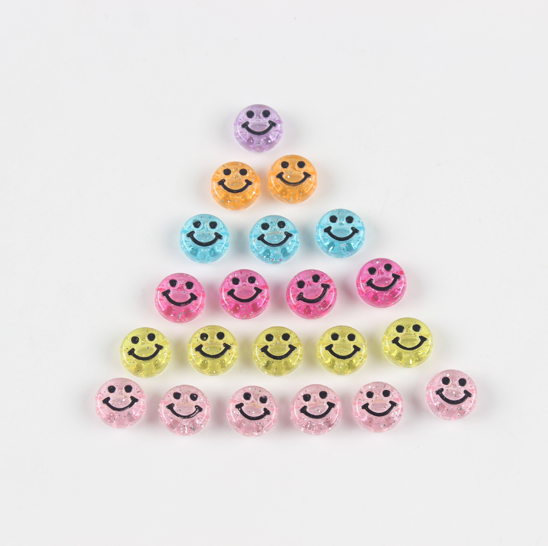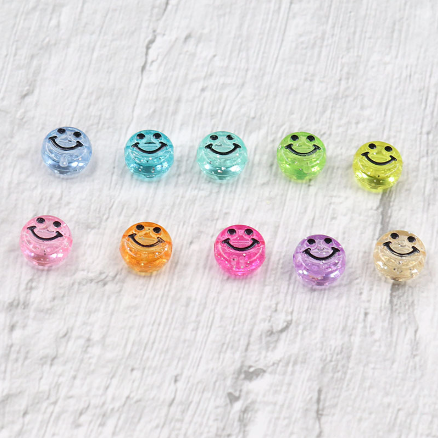 10MM Transparent Clear Rainbow Colored Flat Round Smiley Face Beads