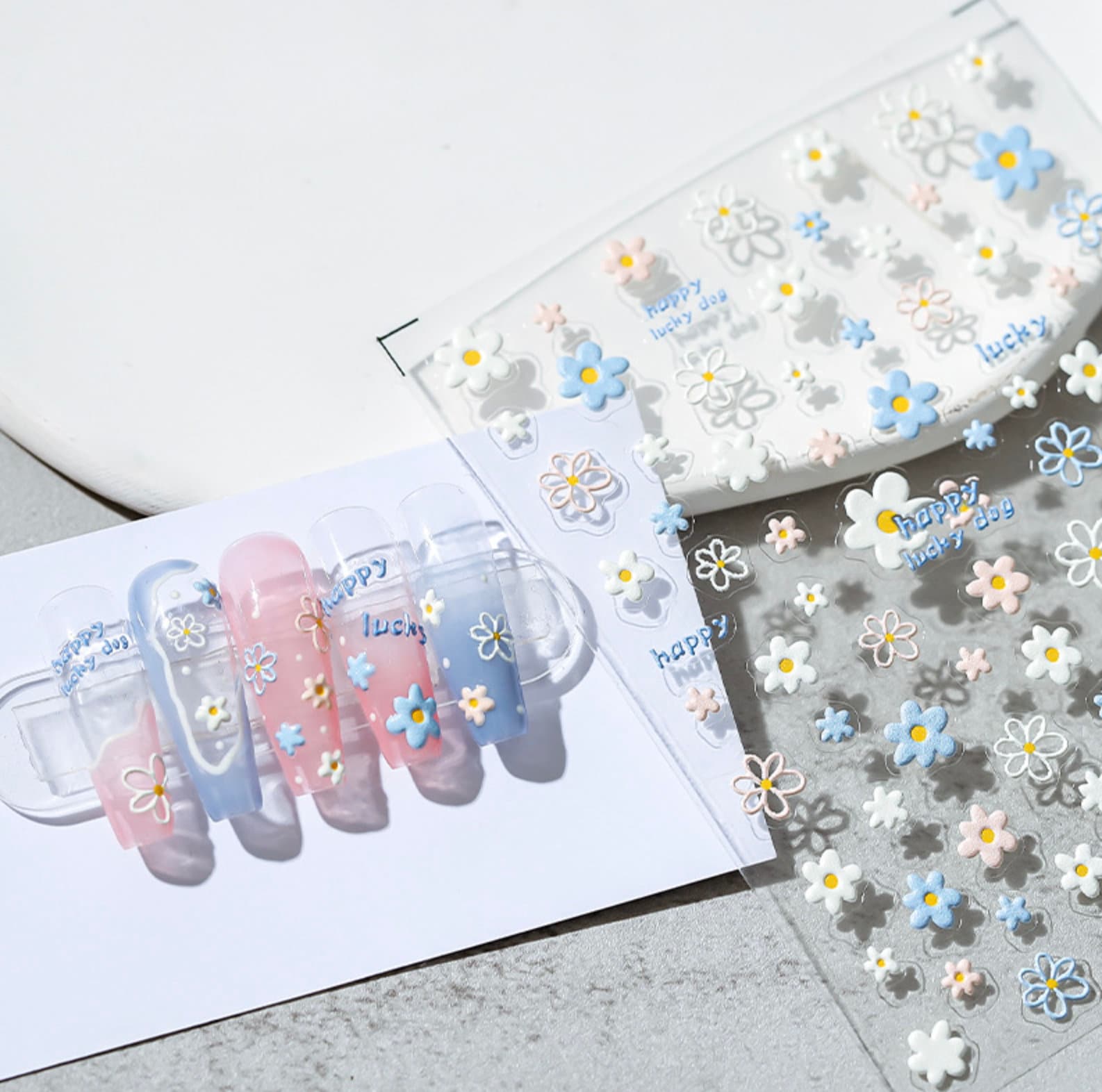 3D Pink and Blue Flower Power, Flower Field Nail Art Stickers (TS-1411)