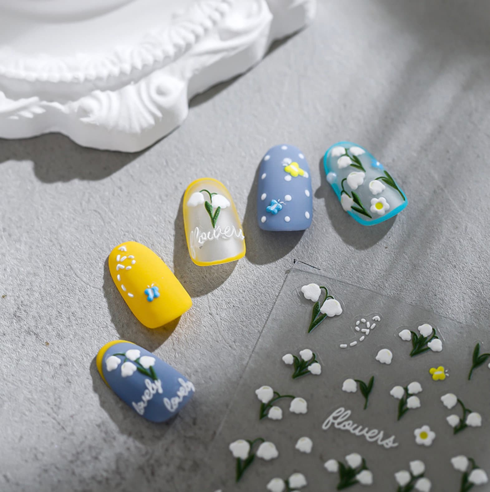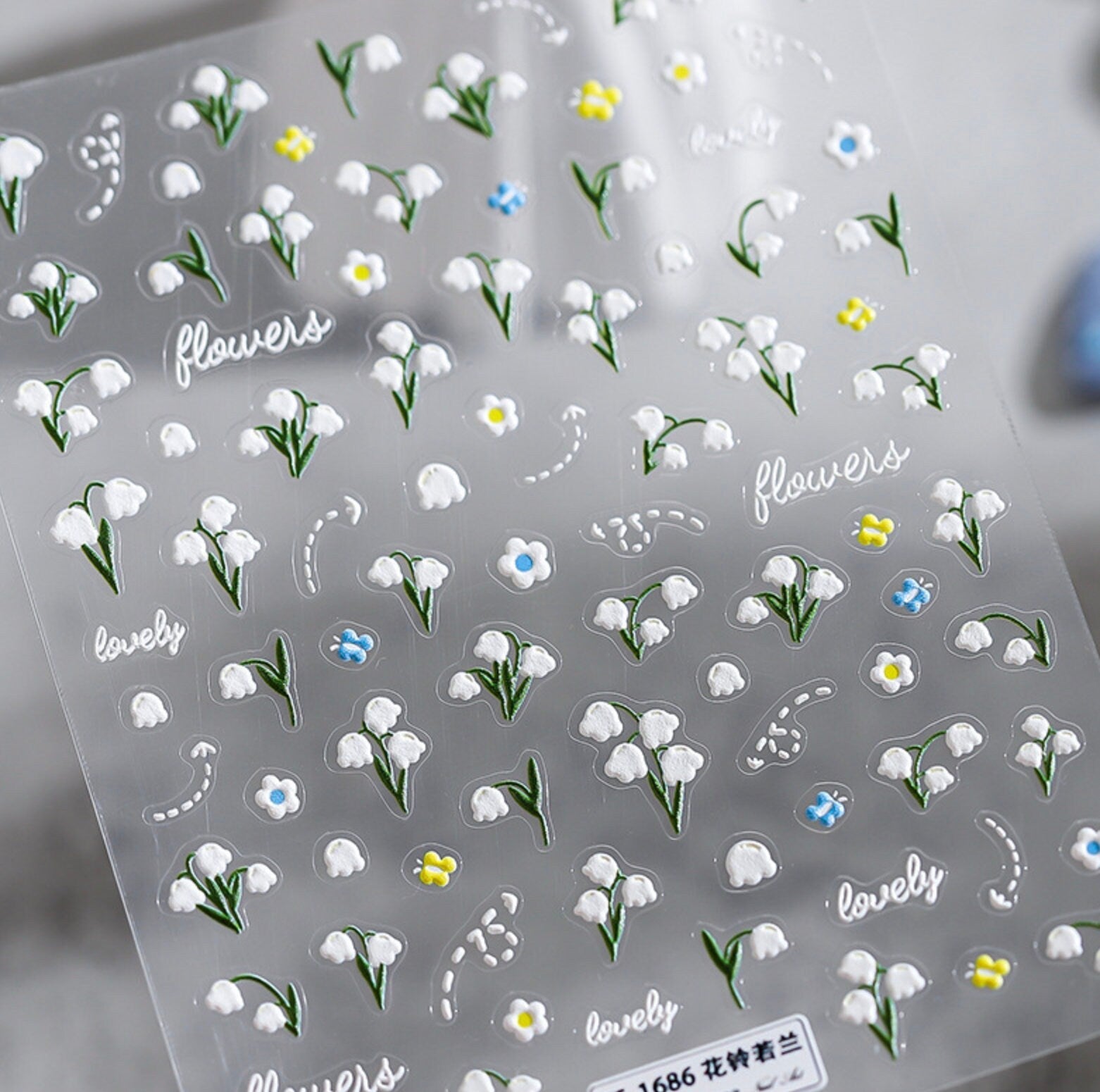 3D White Bell Flower Themed Nail Art Stickers (TS-1686)