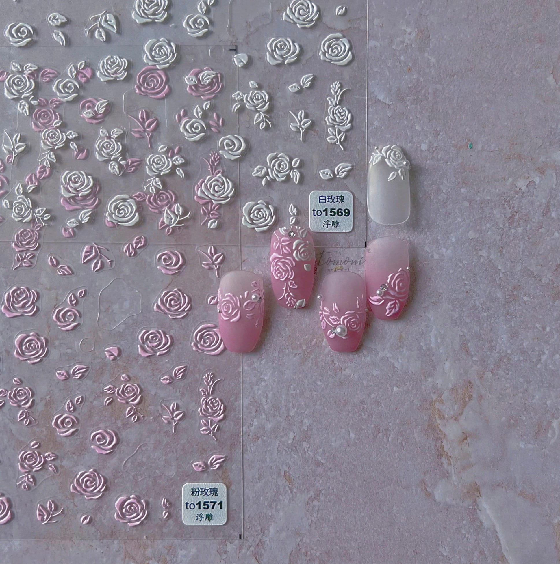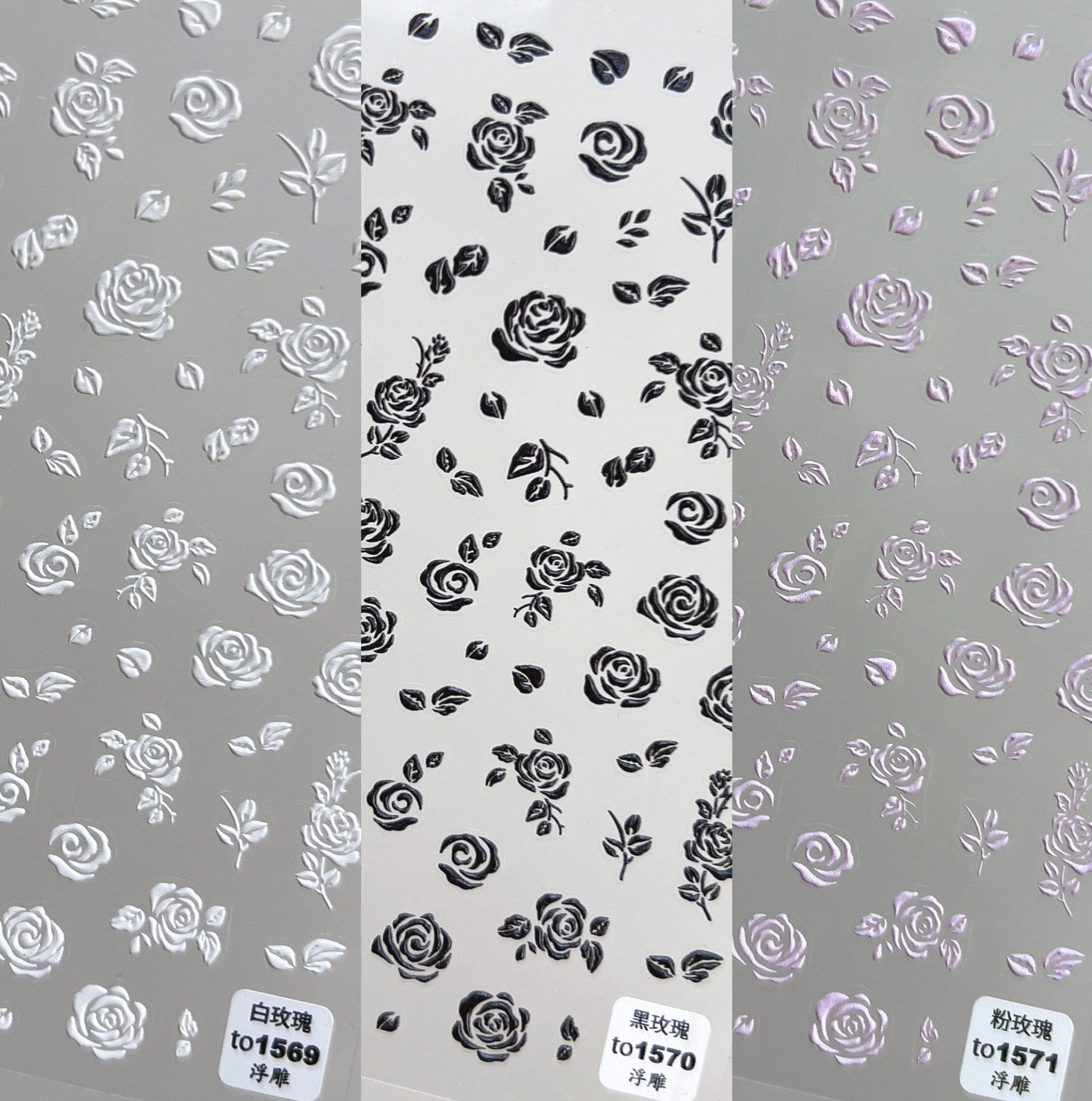 5D Roses, Flower Themed Nail Art Stickers (to1569, to1570, to1571)