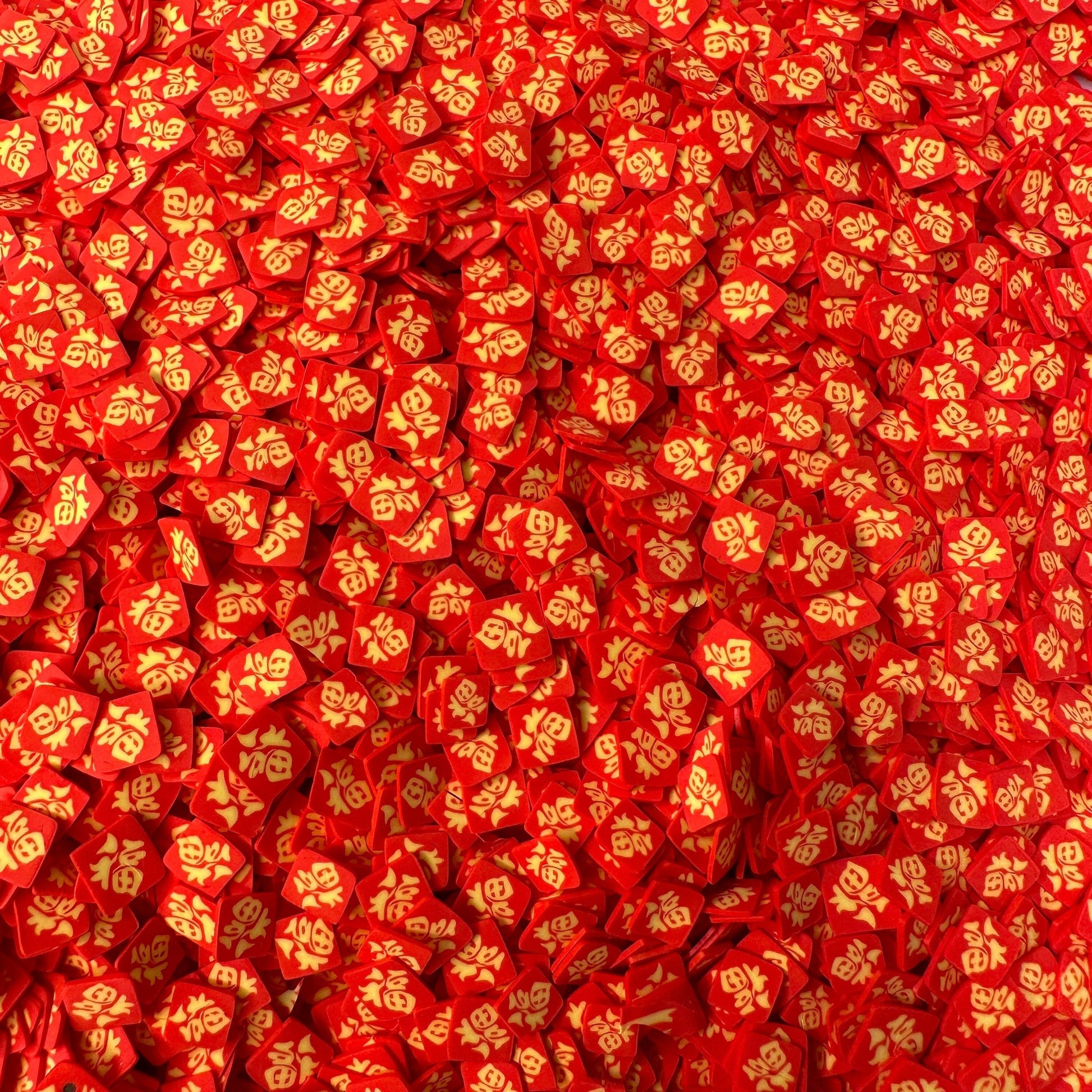 FAKE 5MM Chinese Character "Lucky" Polymer Clay Sprinkle (NOT EDIBLE)D10-27