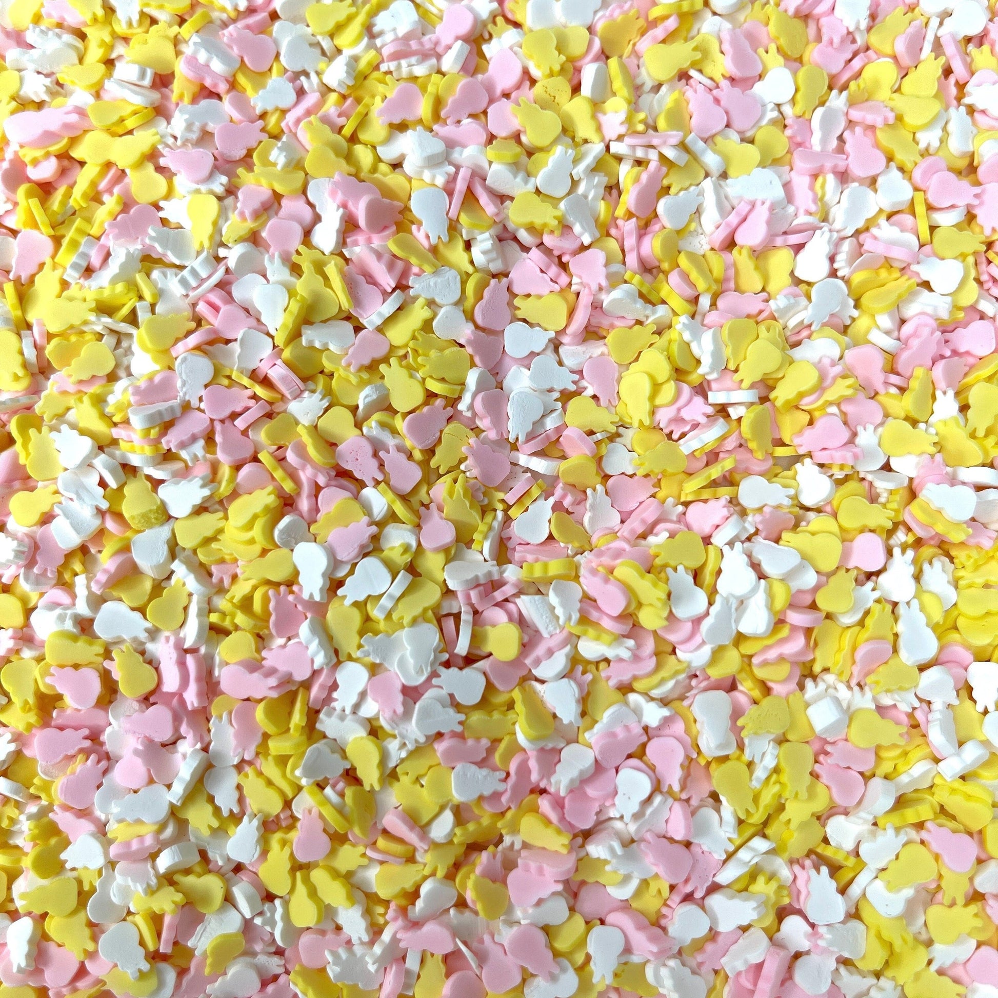 Any mixes that contain pearls, rhinestones, and/or thick-cut sprinkles (usually 10MM size) may be heavier than plain sprinkles.