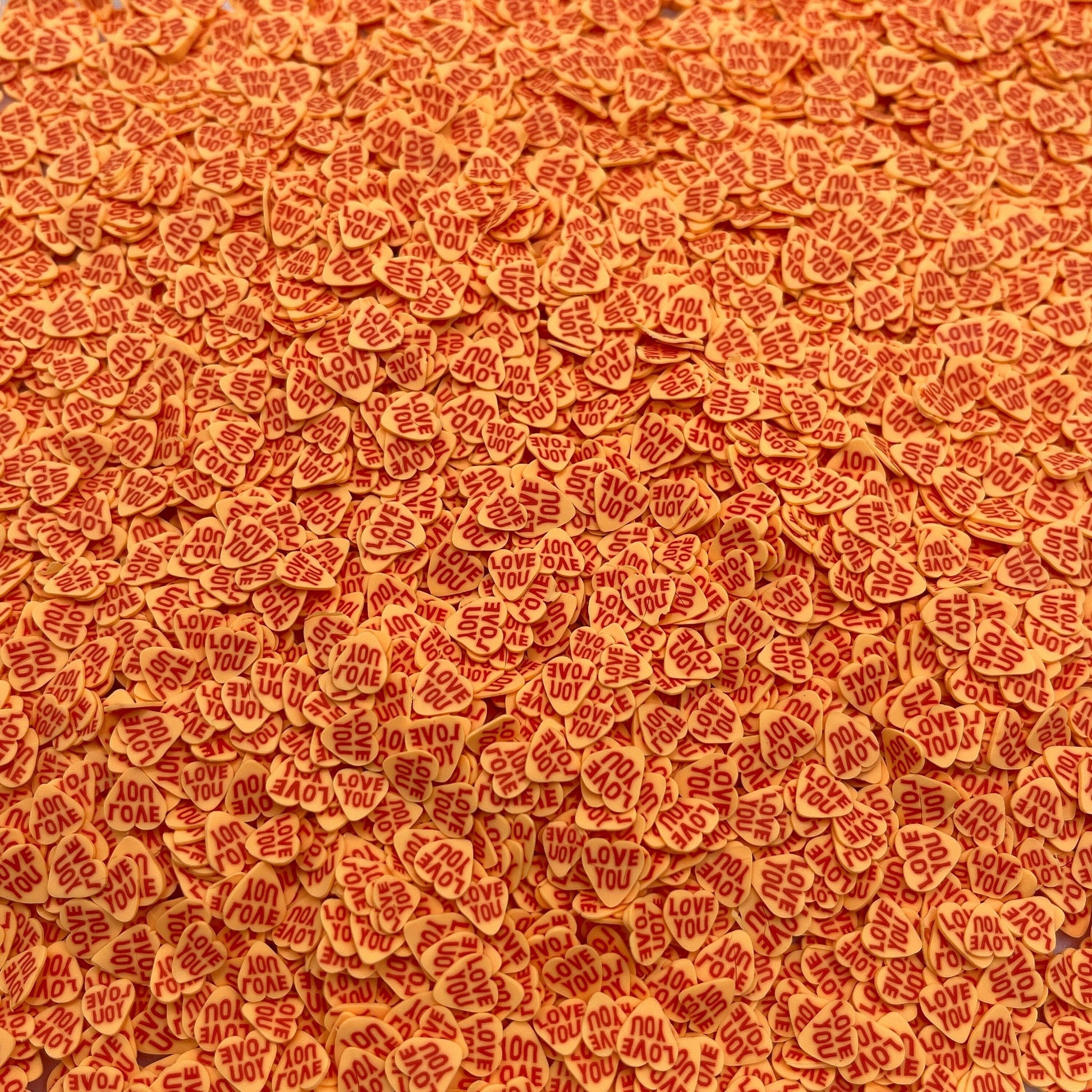 FAKE 5MM Orange Love You Heart, Valentine Polymer Sprinkles (NOT EDIBLE) D18-23