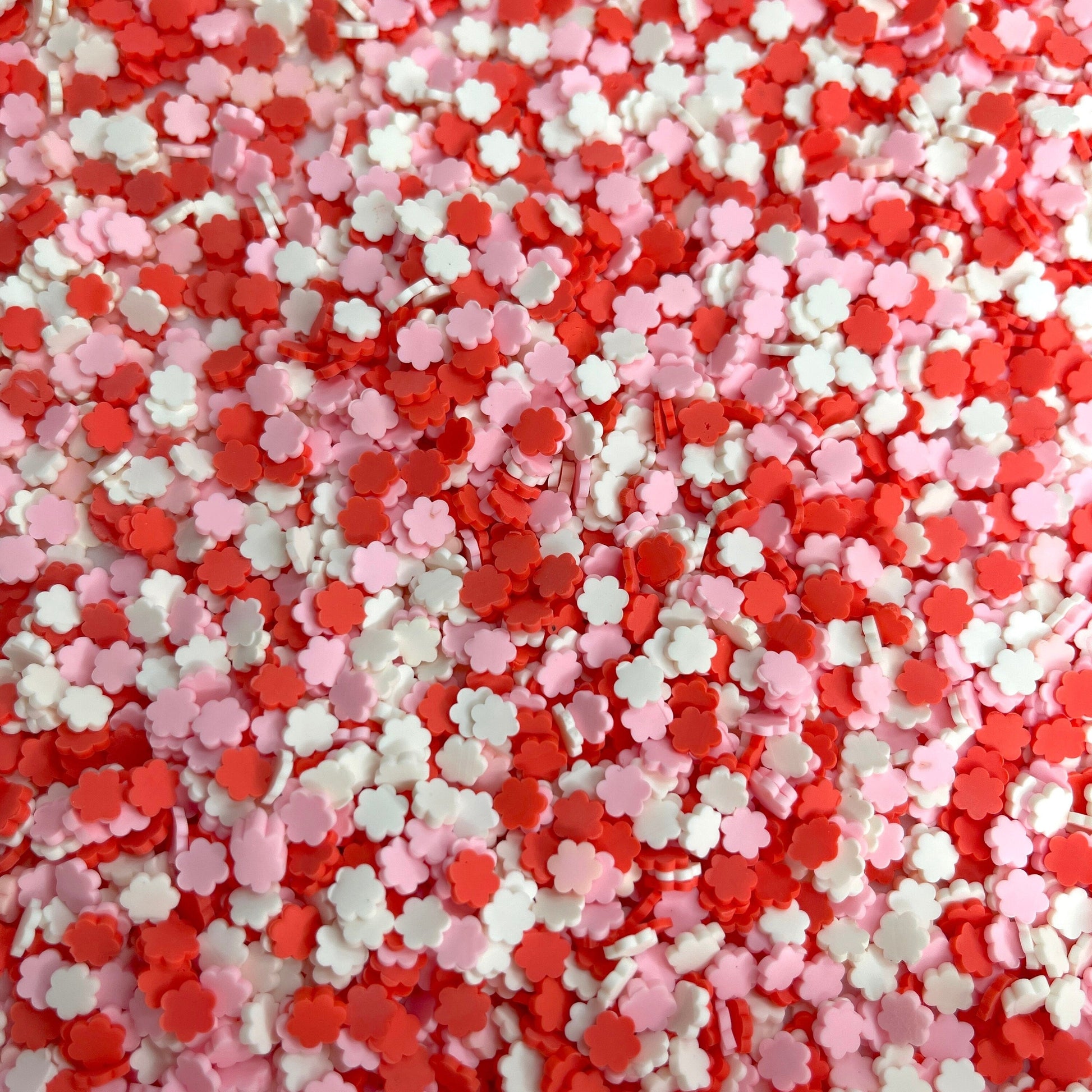 FAKE 5MM Pink White Red Flower, Floral Polymer Clay Sprinkle (NOT EDIBLE) D29-23