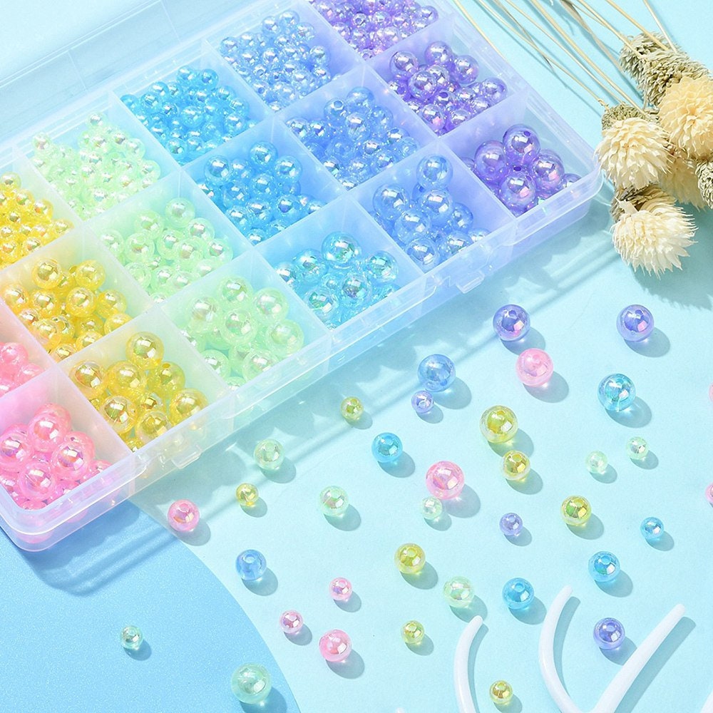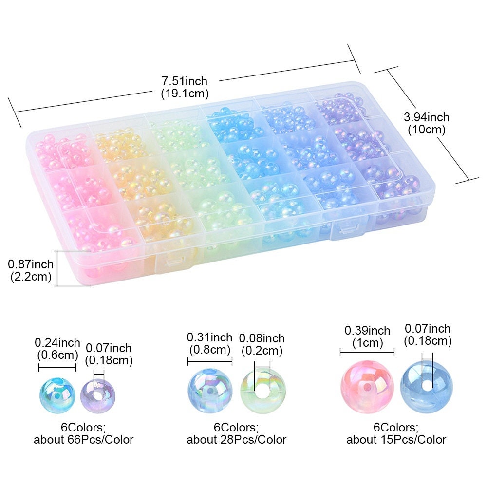 6 Color, 3 Size AB Translucent Acrylic Bead Kits (650 beads per box)
