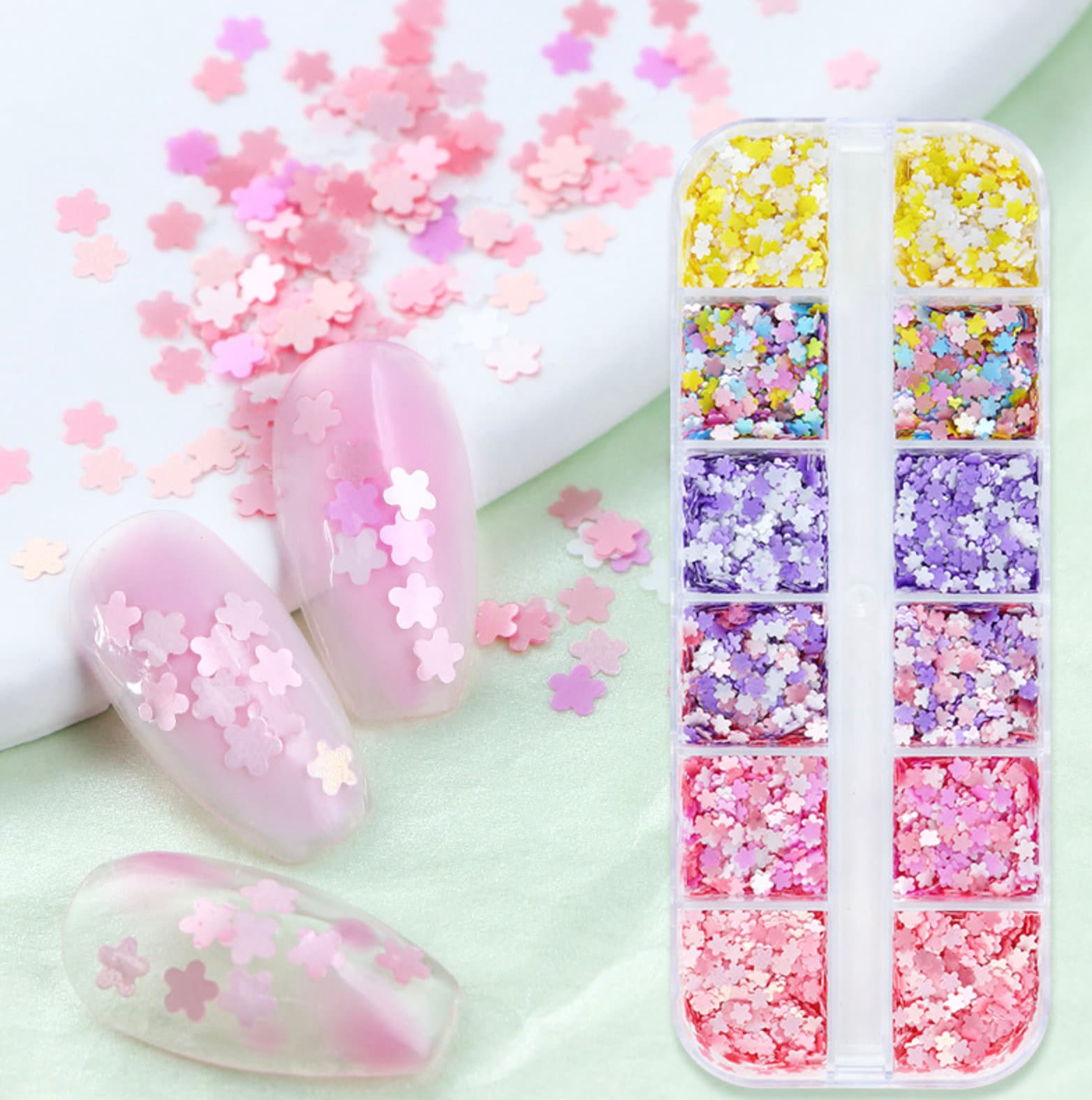 6 Color Mix 3MM Flower Glitter Flake Set for Nail Art, DIY