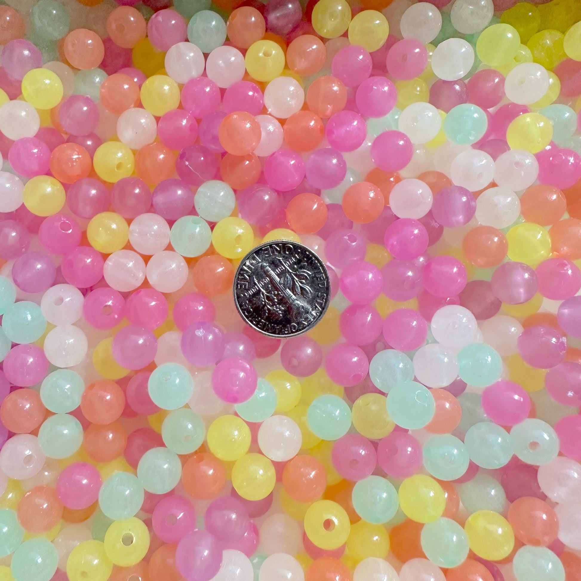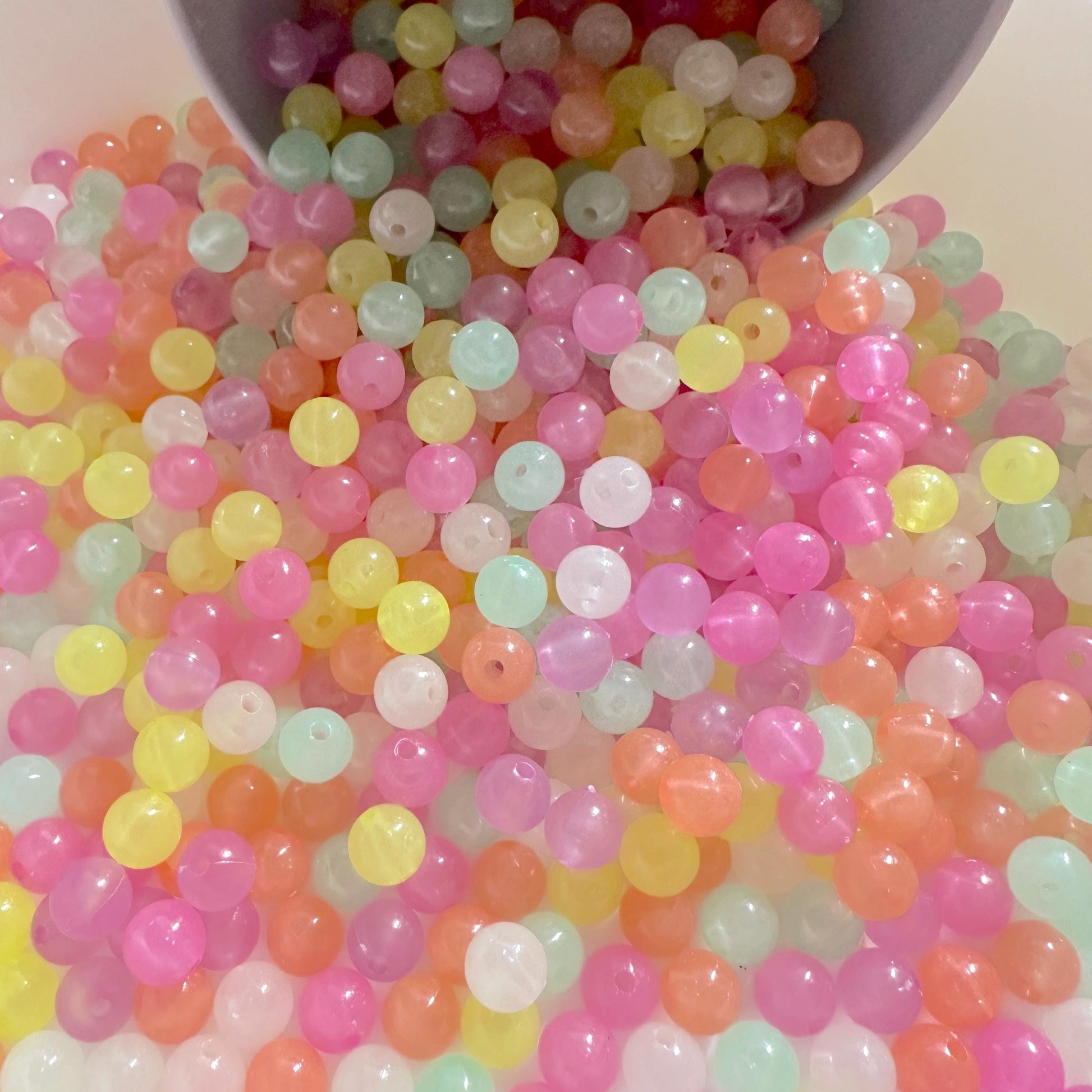 6MM/8MM Mixed Color Glow-in-The-Dark Acrylic Round Ball Beads