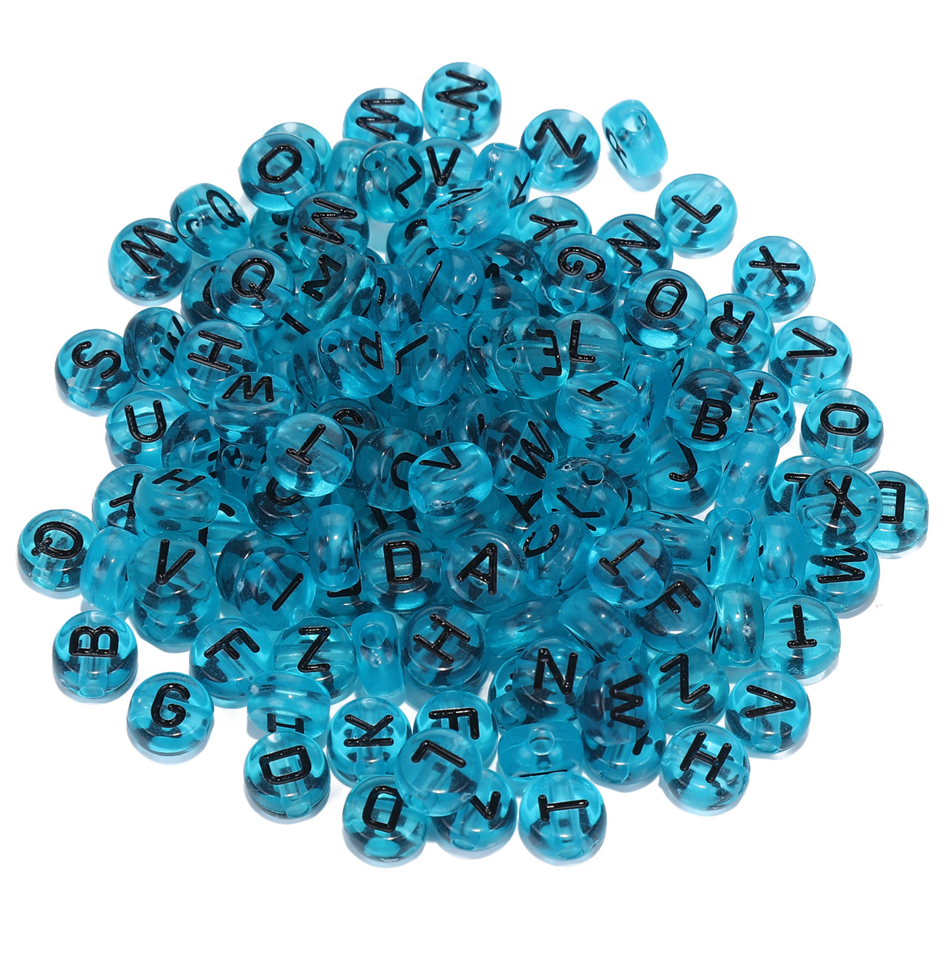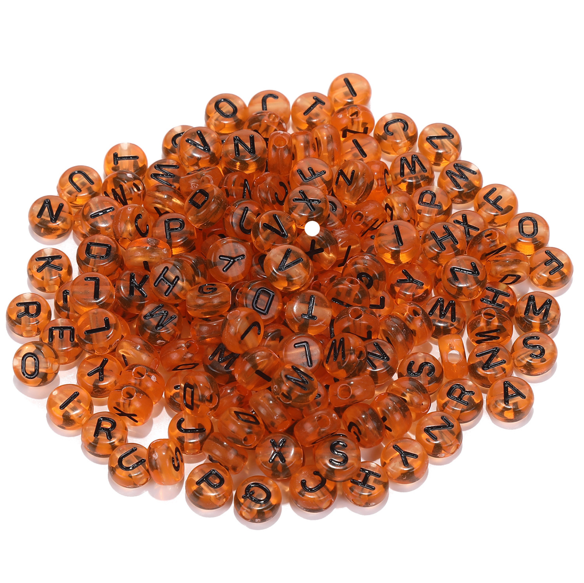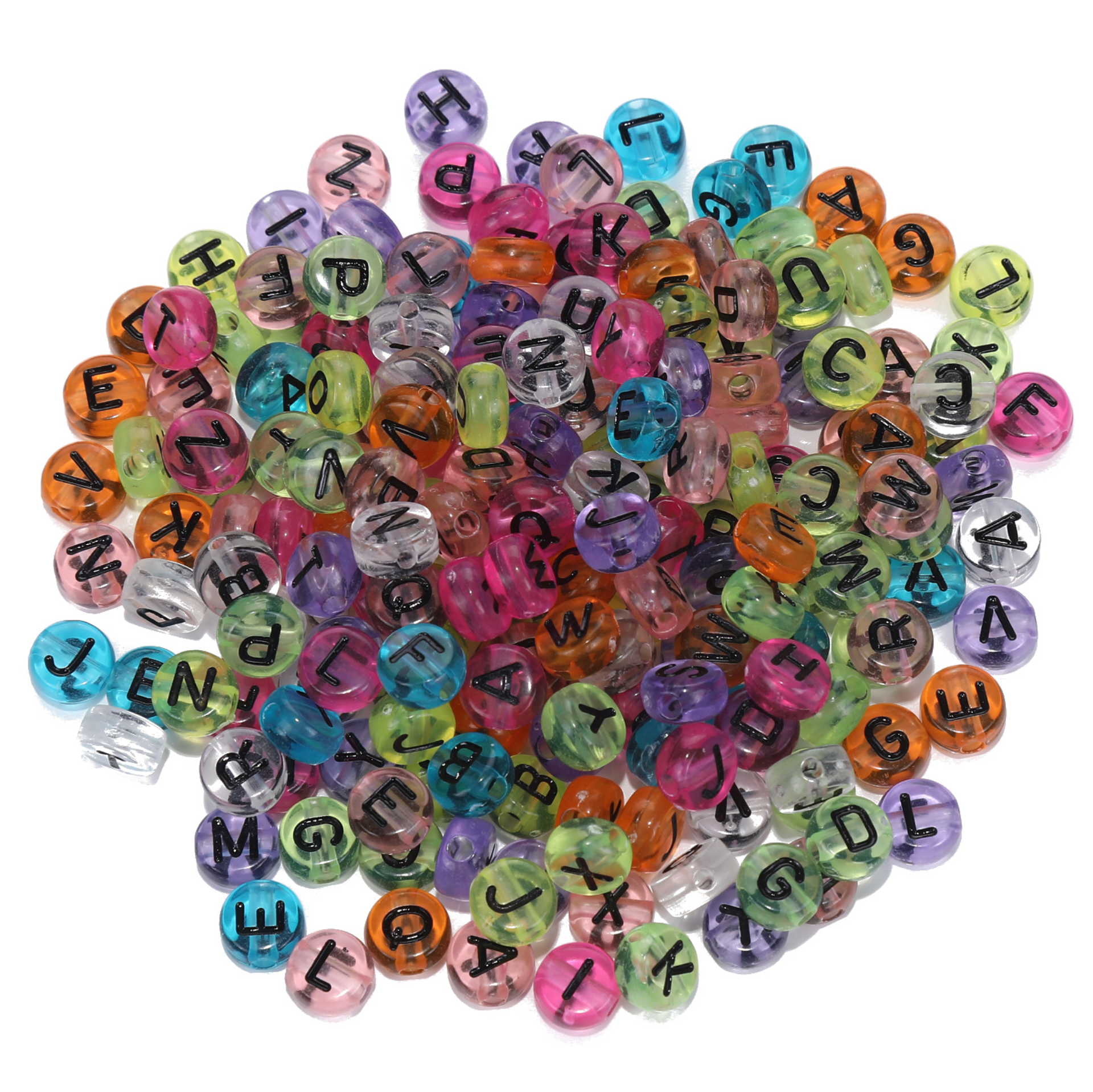 7MM Translucent Black Letter, Mixed Alphabet Acrylic Beads
