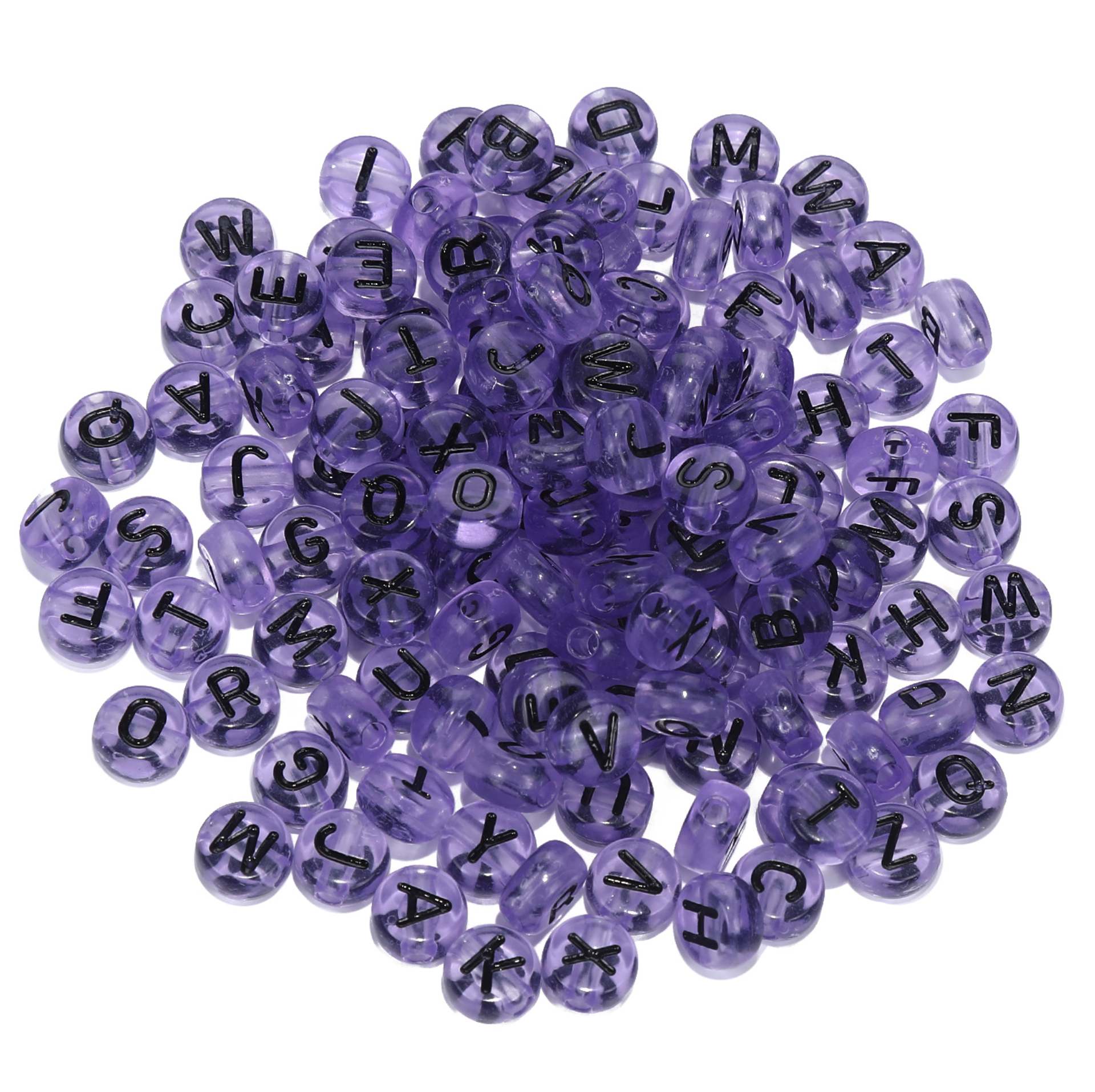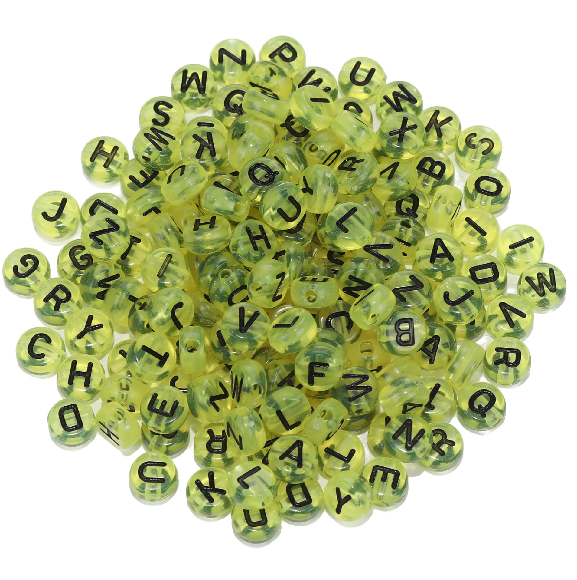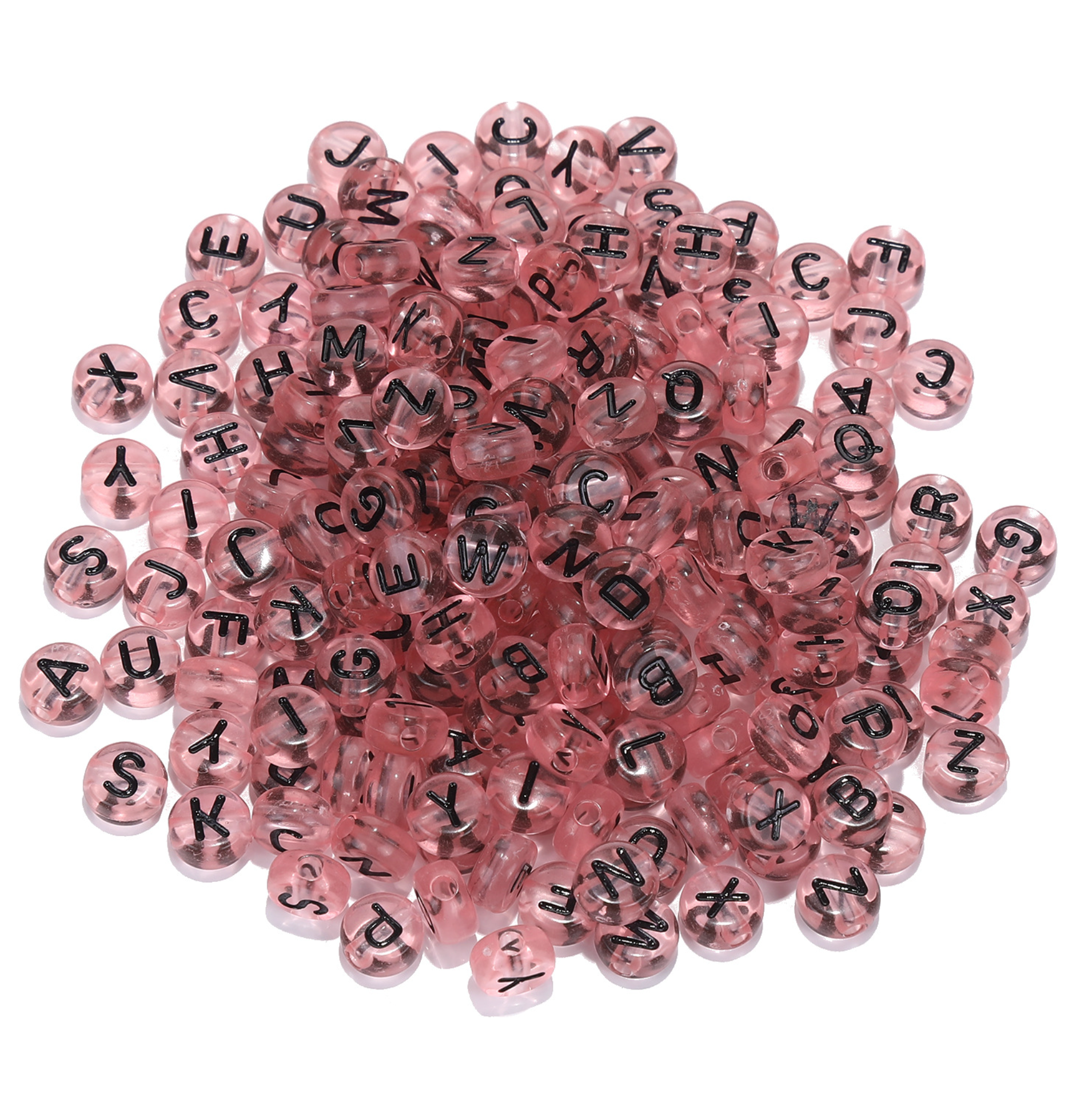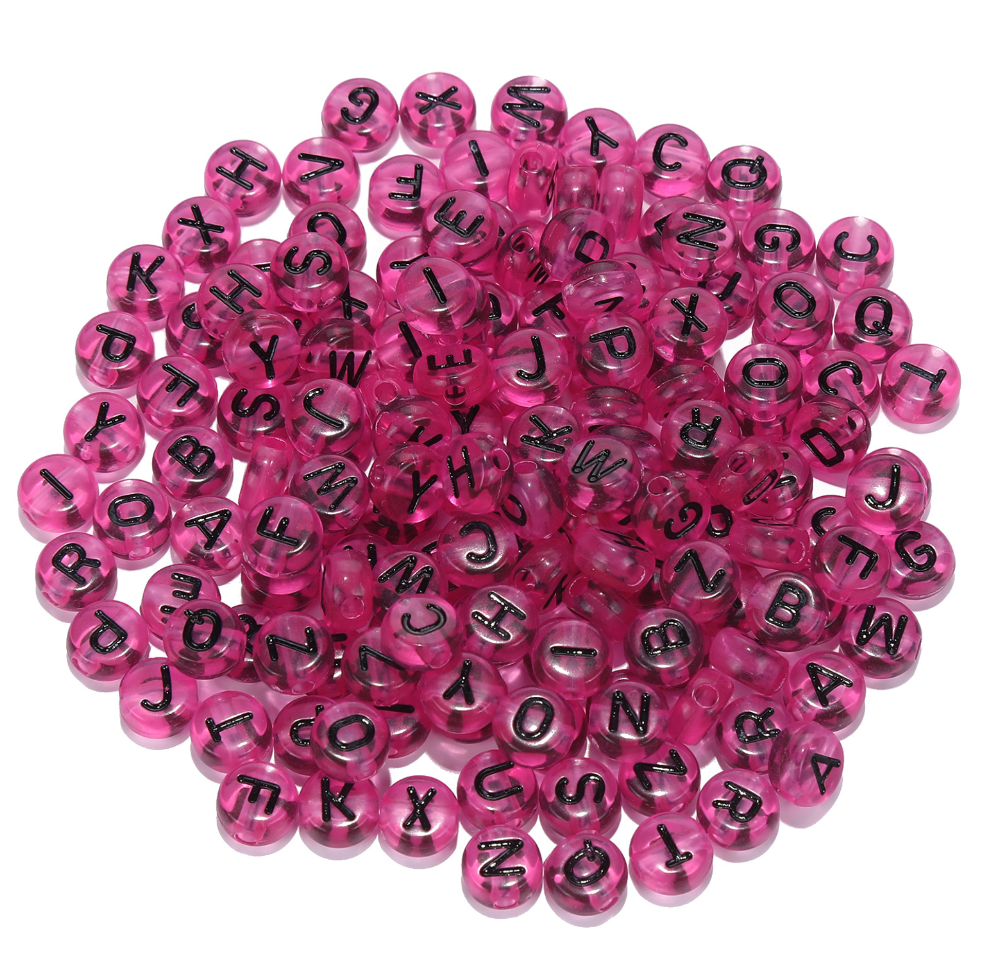 7MM Translucent Black Letter, Mixed Alphabet Acrylic Beads