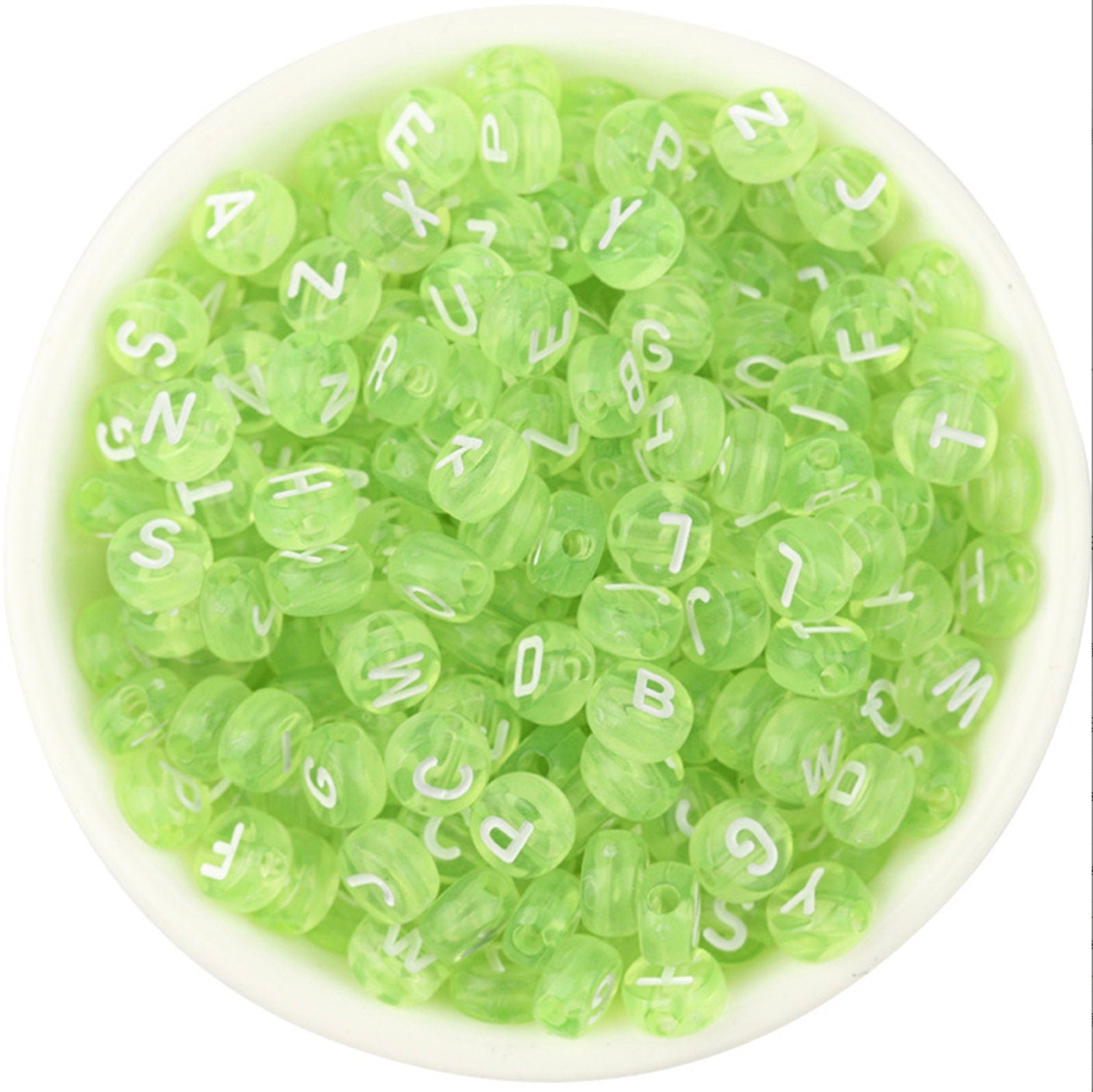 7MM Transparent Lime Green Acrylic Mixed Letter Beads (200pc/400pc)