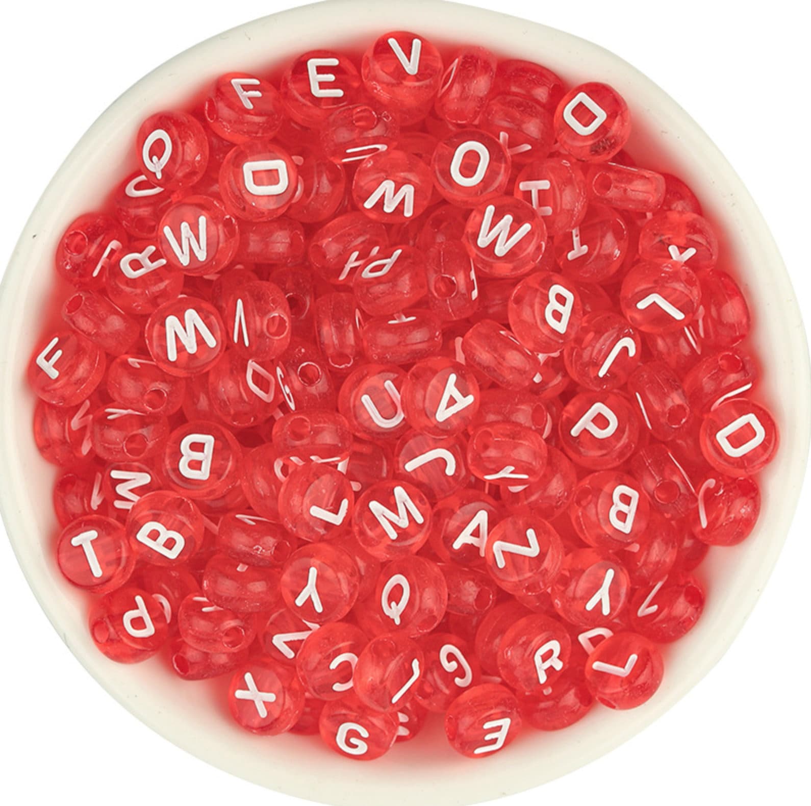 7MM Transparent Red Acrylic Mixed Letter Beads (200pc/400pc)