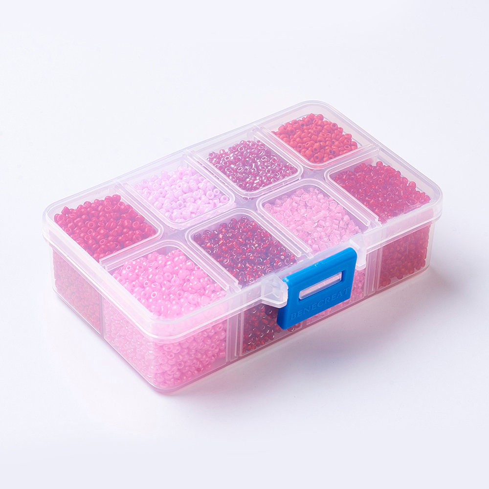 8 Red and Pinks 12/0 Glass Seed Bead Set (2mm, 12500 pieces)