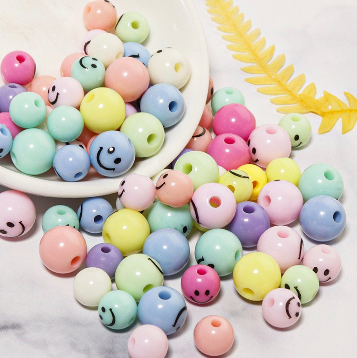 8MM/10MM Mixed Pastel Round Smiley Face Beads