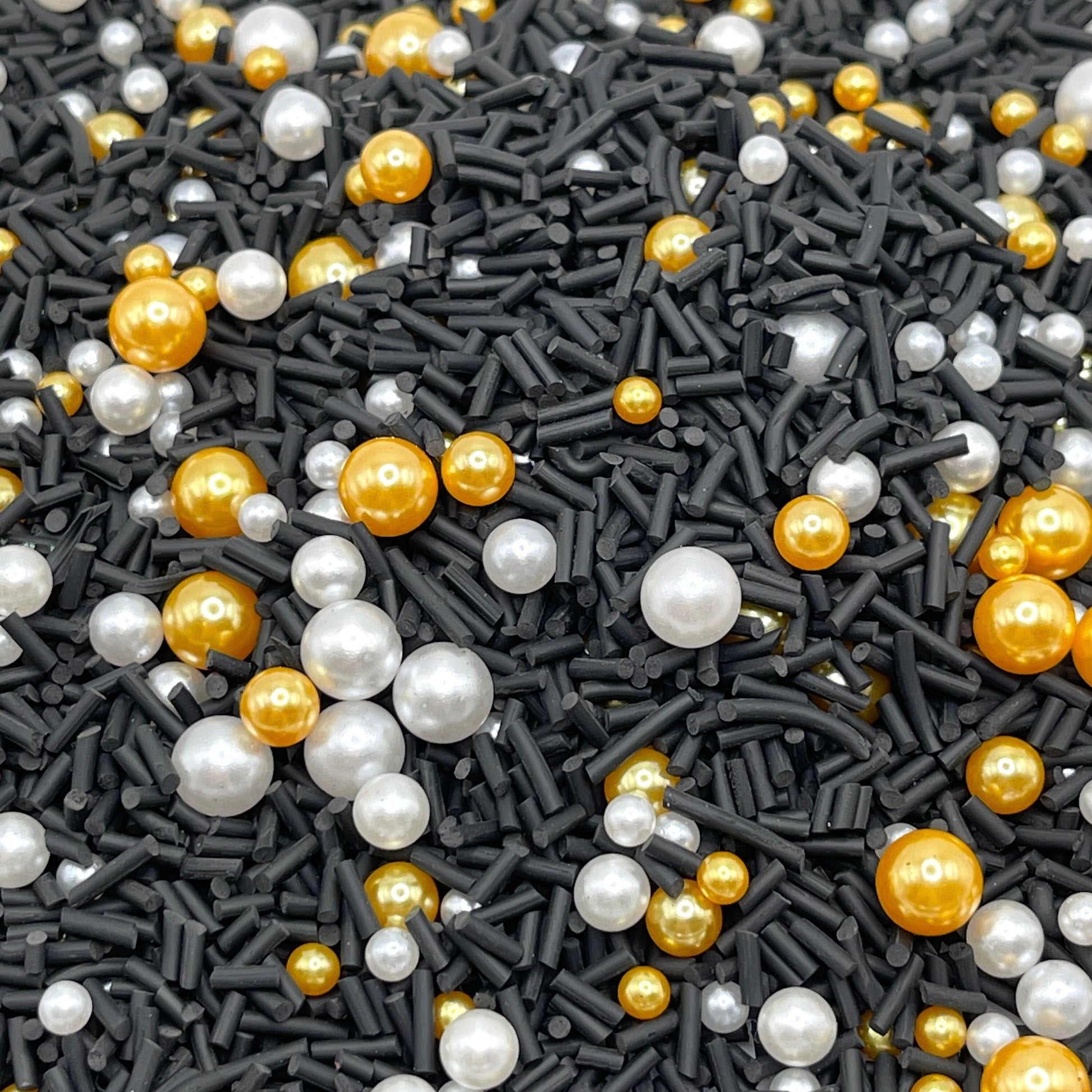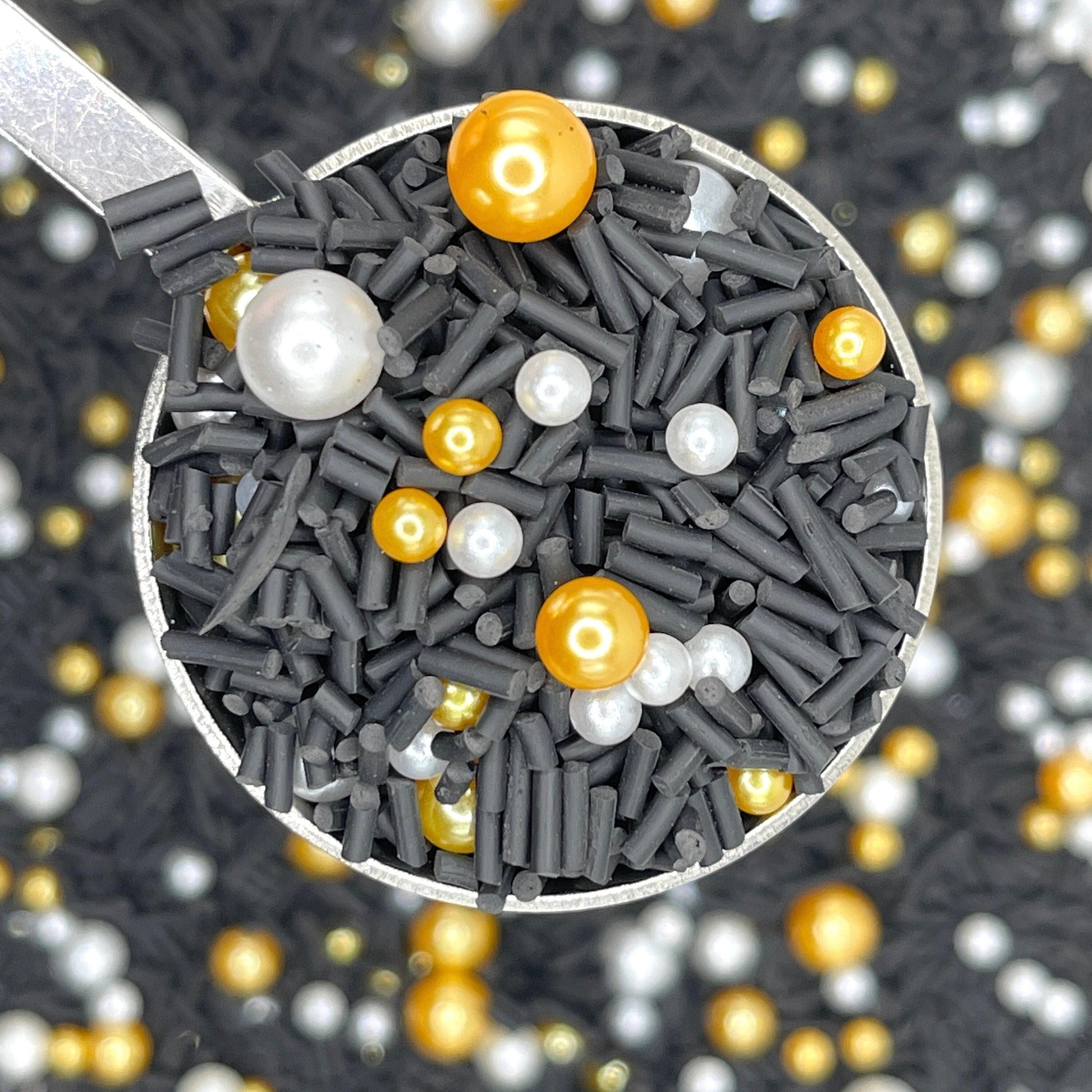 FAKE Black Gold Masquerade Pearl Polymer Clay Sprinkle Mix (NOT EDIBLE) D8-26