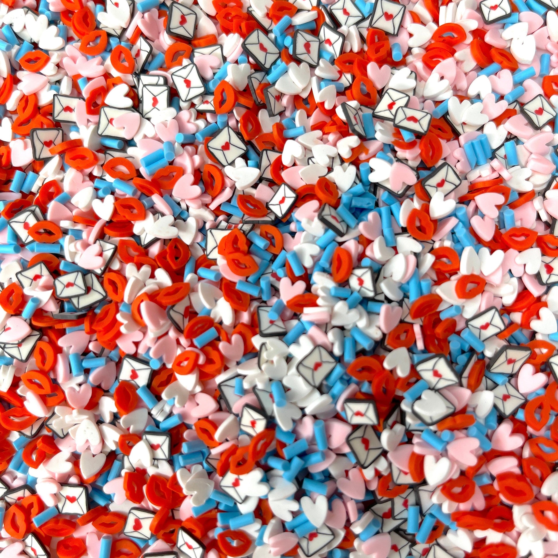 FAKE Blue Love Envelope, Valentine Polymer Clay Sprinkle Mix (NOT EDIBLE) D43-07