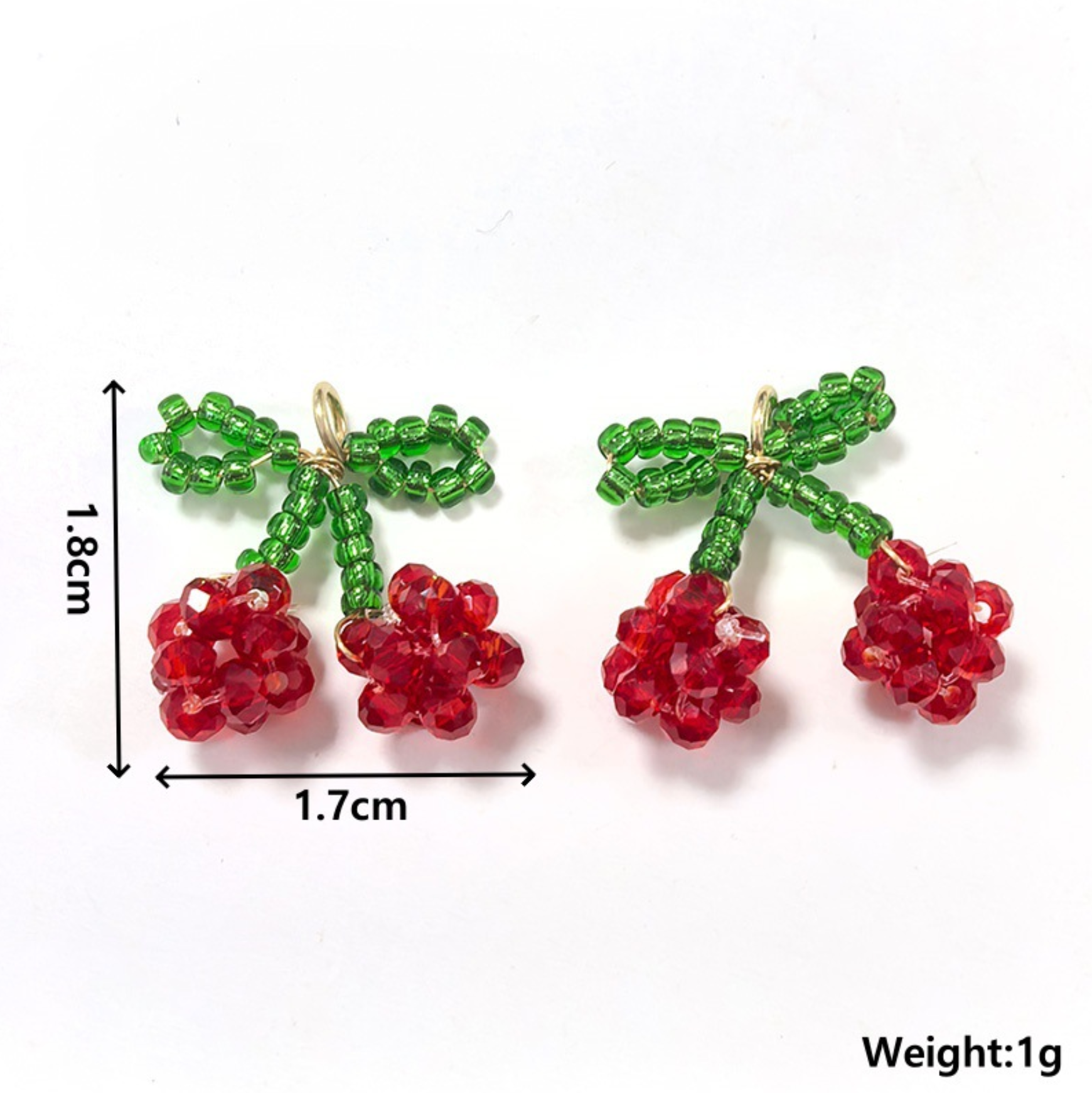 Beaded Cherry Charm, Fruit Themed Charms (18MM x 17MM)
