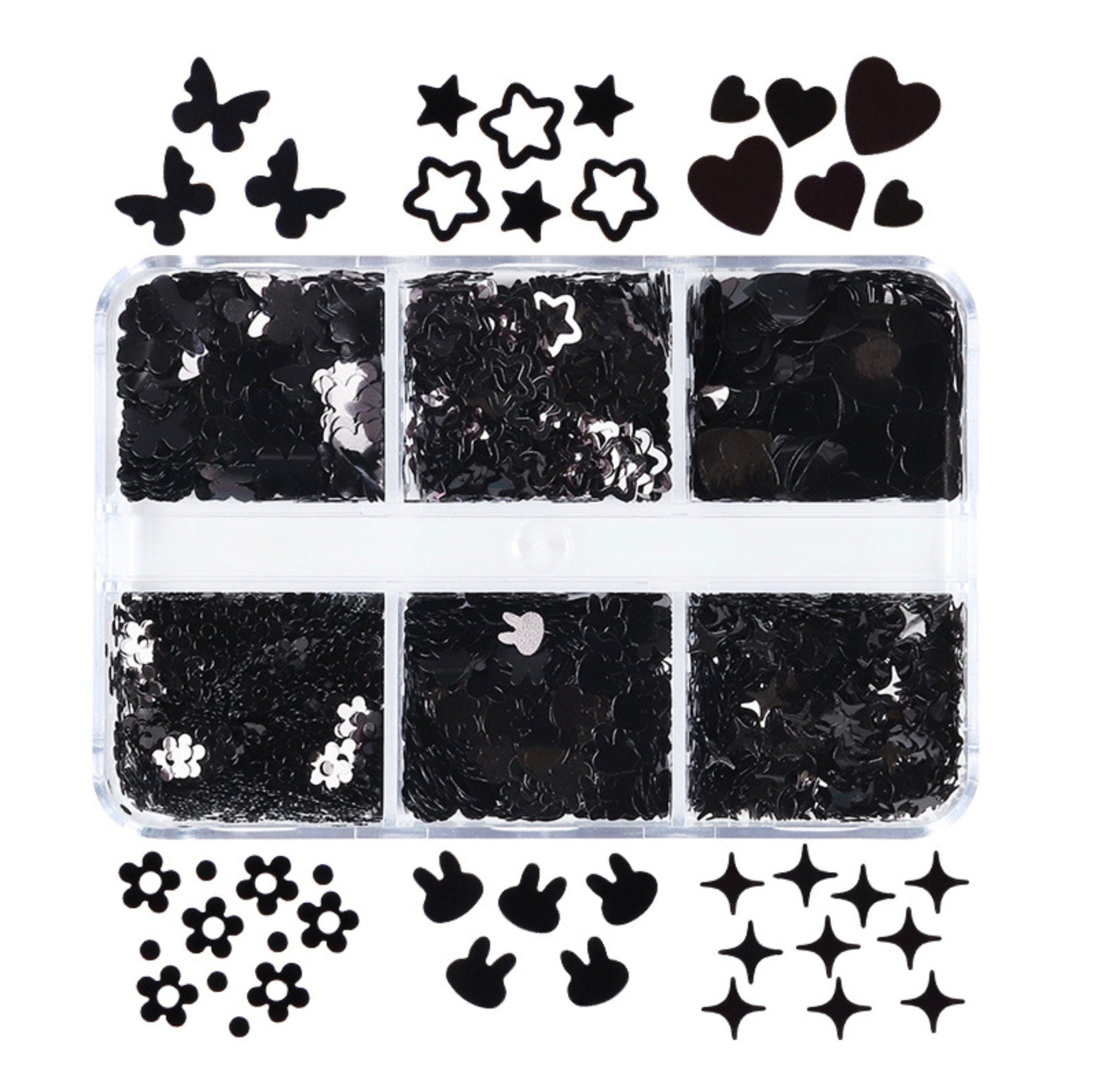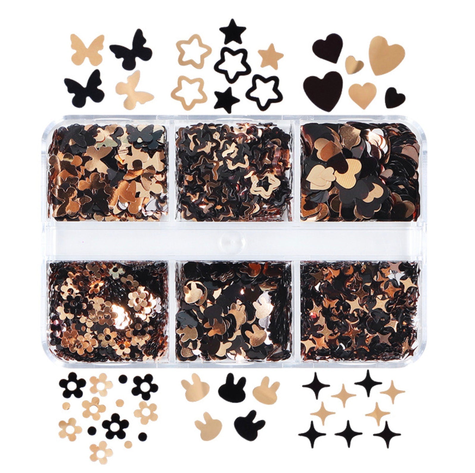 Glitter Flake Sets (Butterly, Bunny, Heart, Sparkle, Flower, Star) Gold/Black