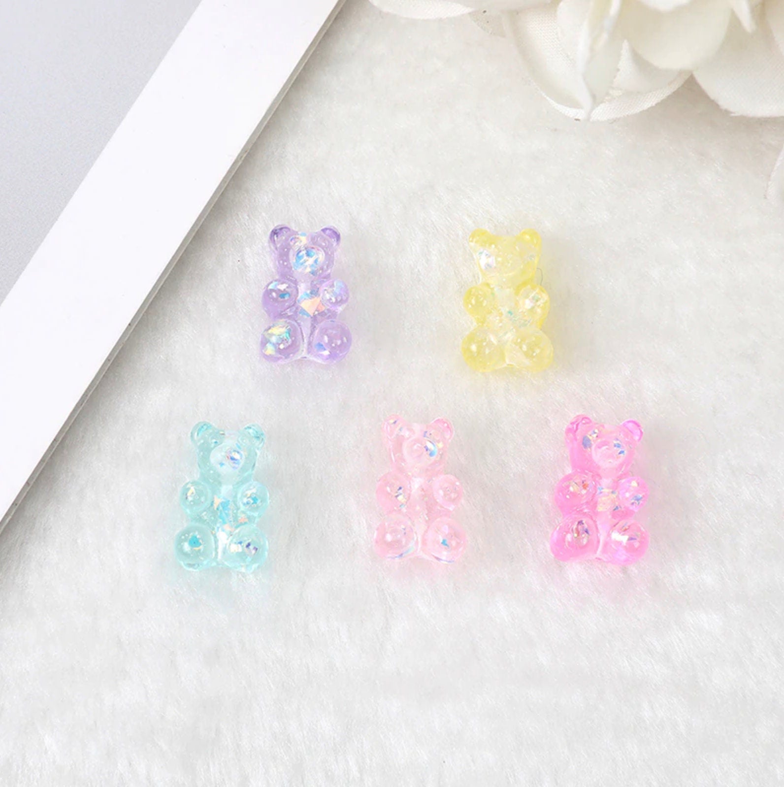 16MM X 10MM Glitter Gummy Bear Beads (Vertical Hole)