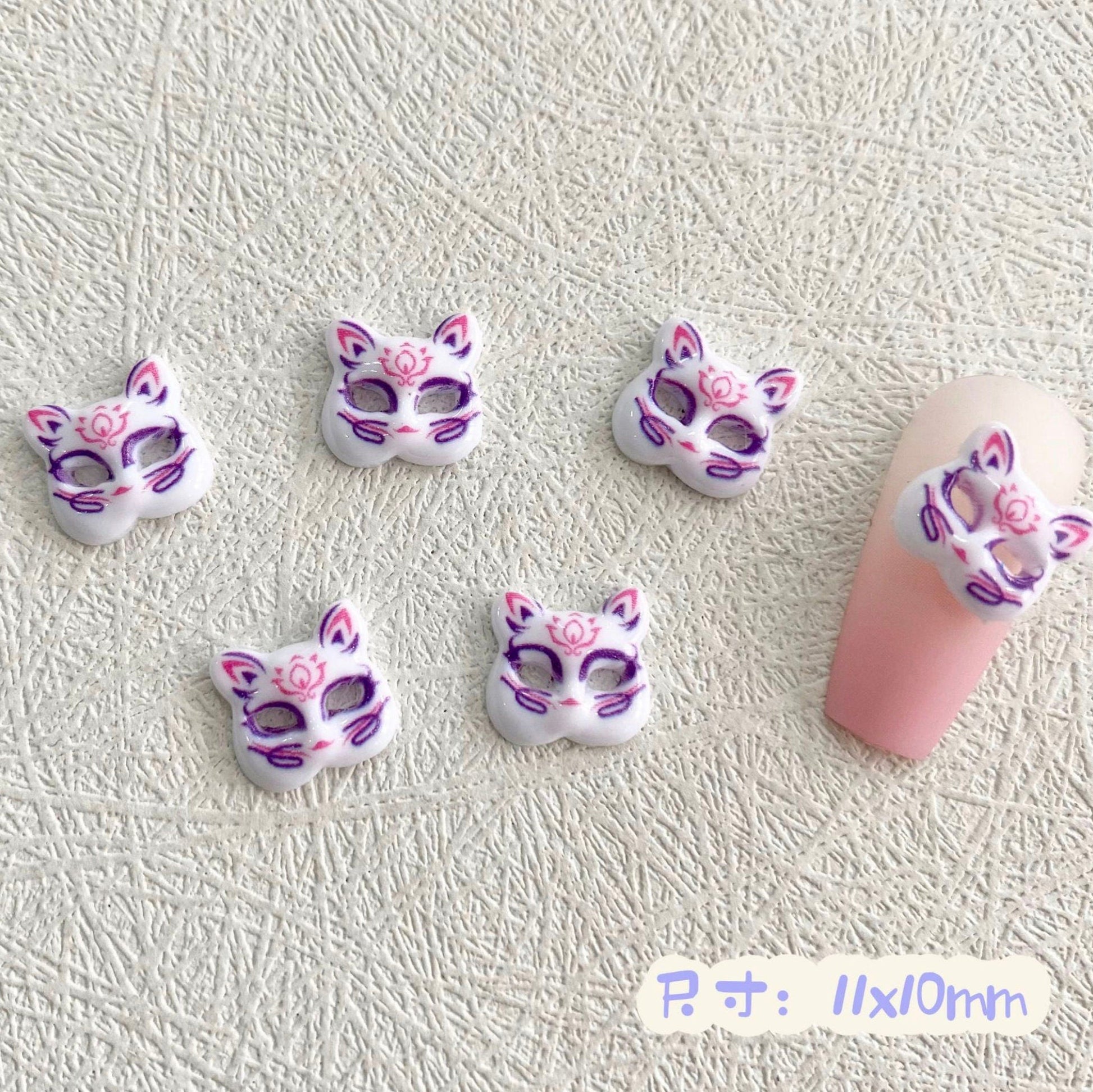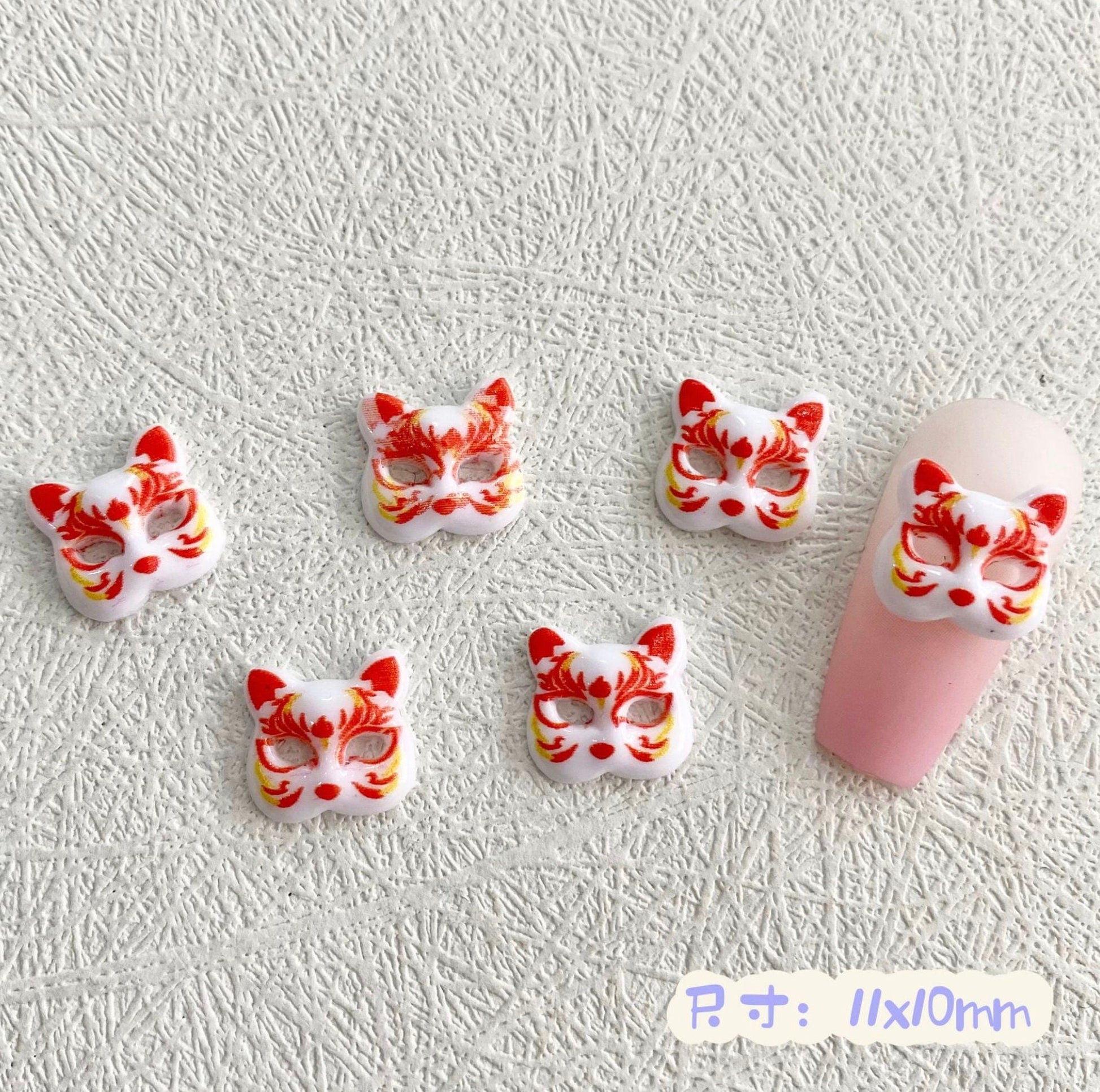 Kitsune Fox Mask, Animal Theme Nail Art Charm, Mini Cabochon (10mm x 11mm)