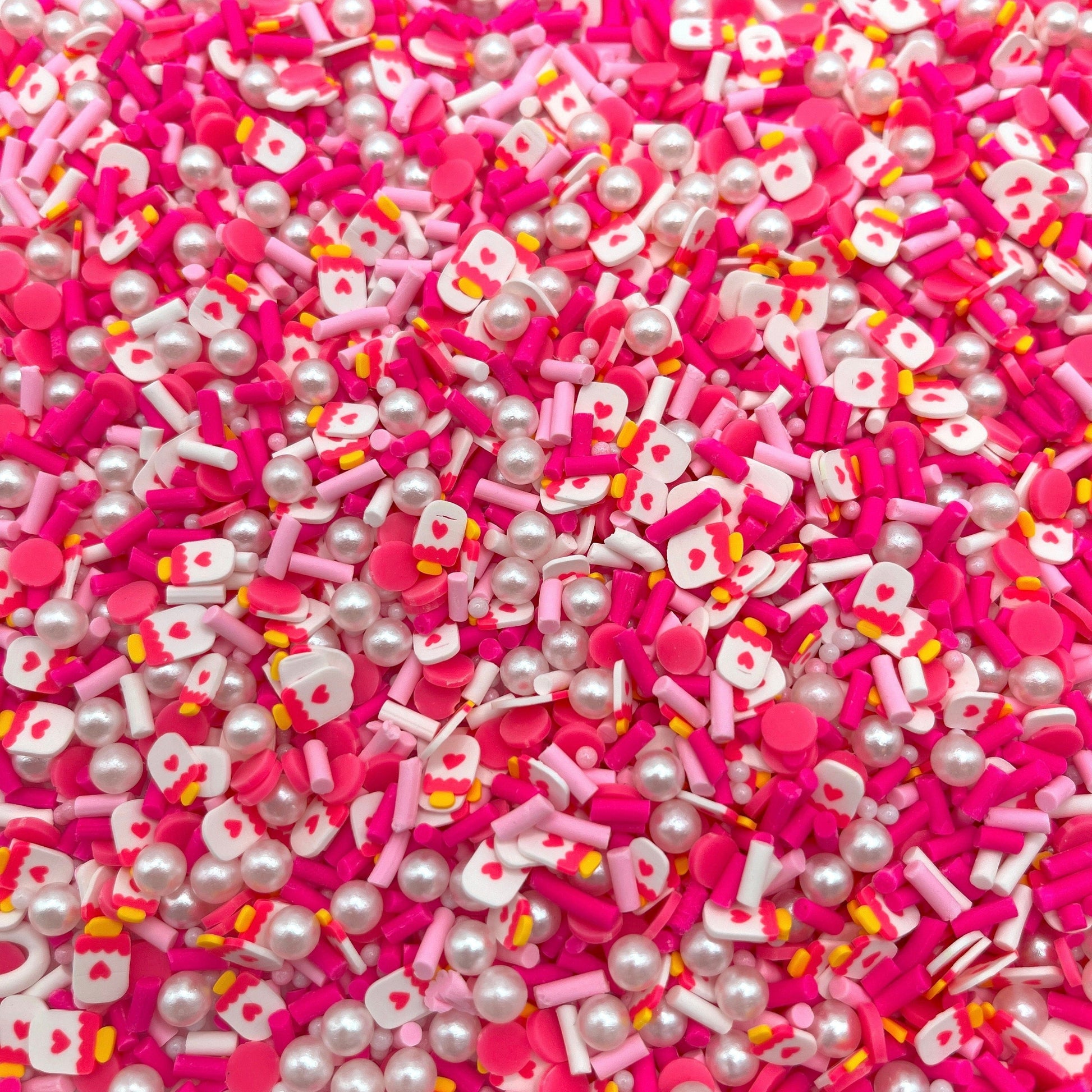 Any mixes that contain pearls, rhinestones, and/or thick-cut sprinkles (usually 10MM size) may be heavier than plain sprinkles.