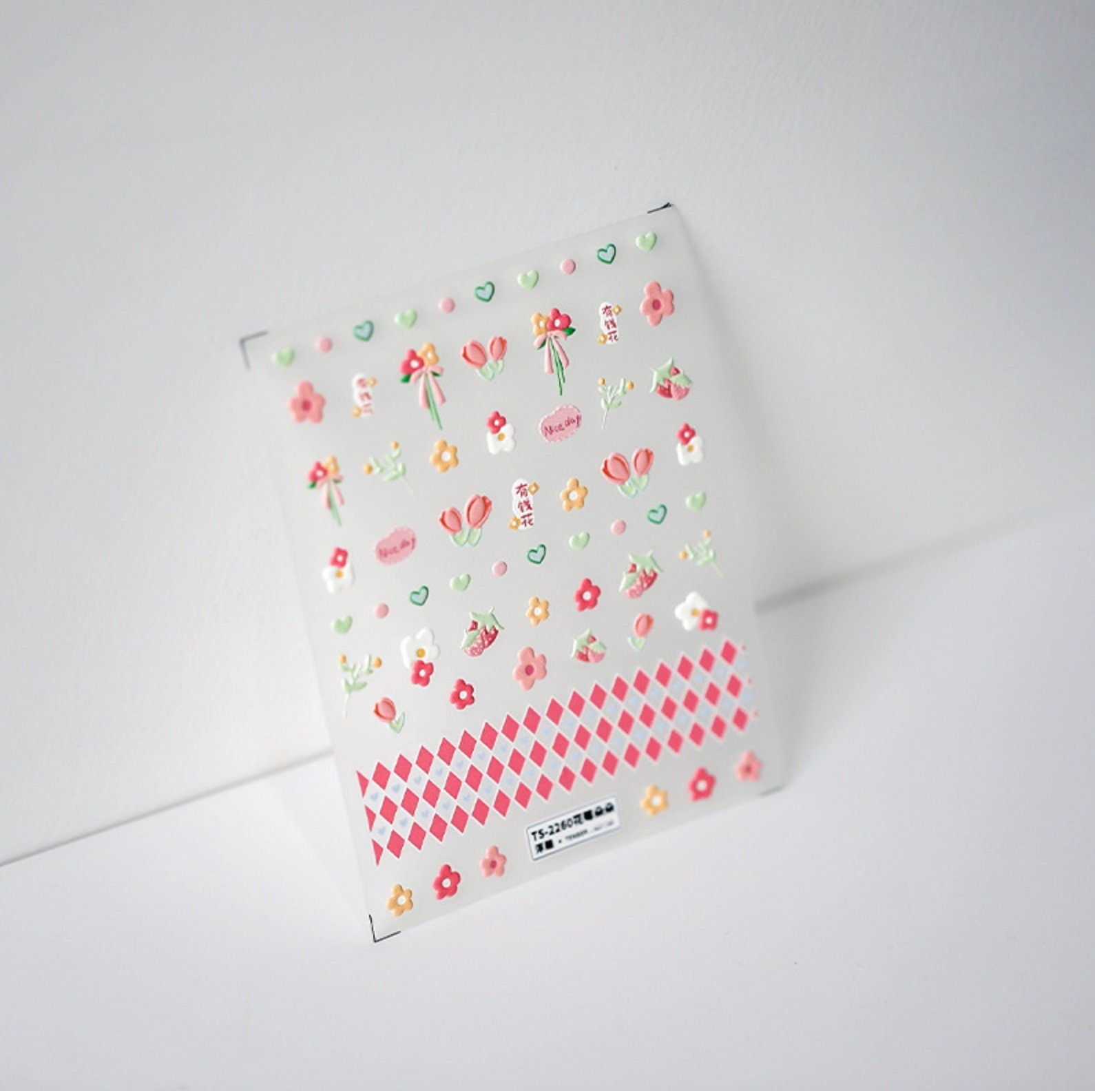 Cute Pink Strawberry Flower Buds Nail Art Stickers (TS-2259, TS-2260)