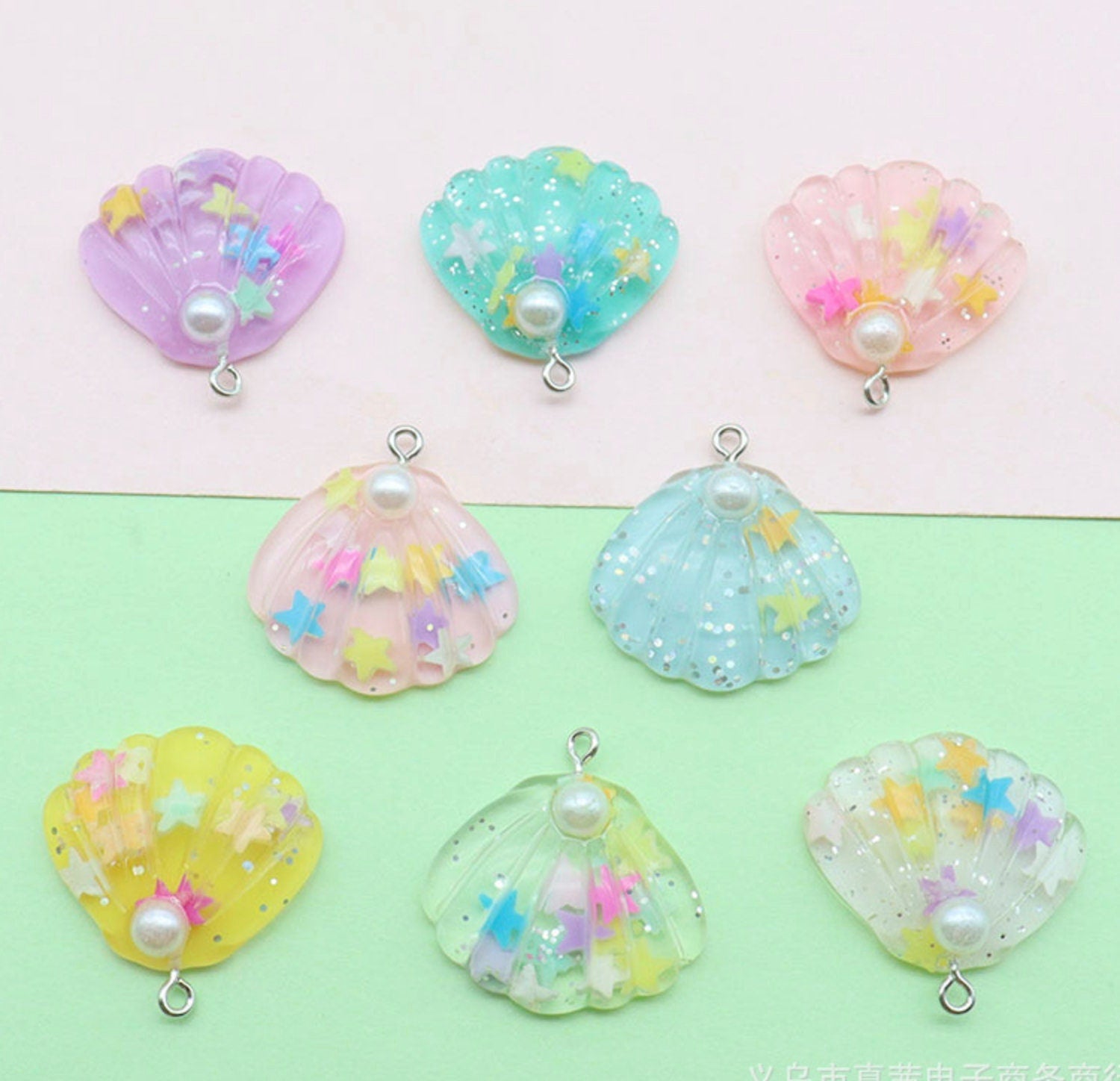 20MM Resin Seashells with Stars and Pearl, Ocean Themed Charms