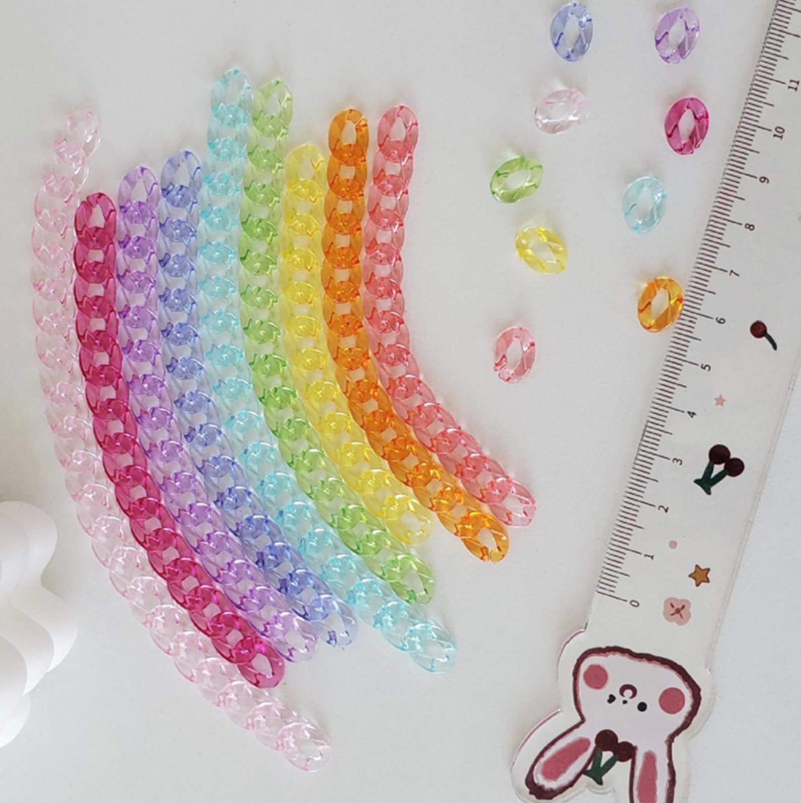 Cute Transparent Rainbow Colored Acrylic Chain Links Pieces (12mm x 9mm)