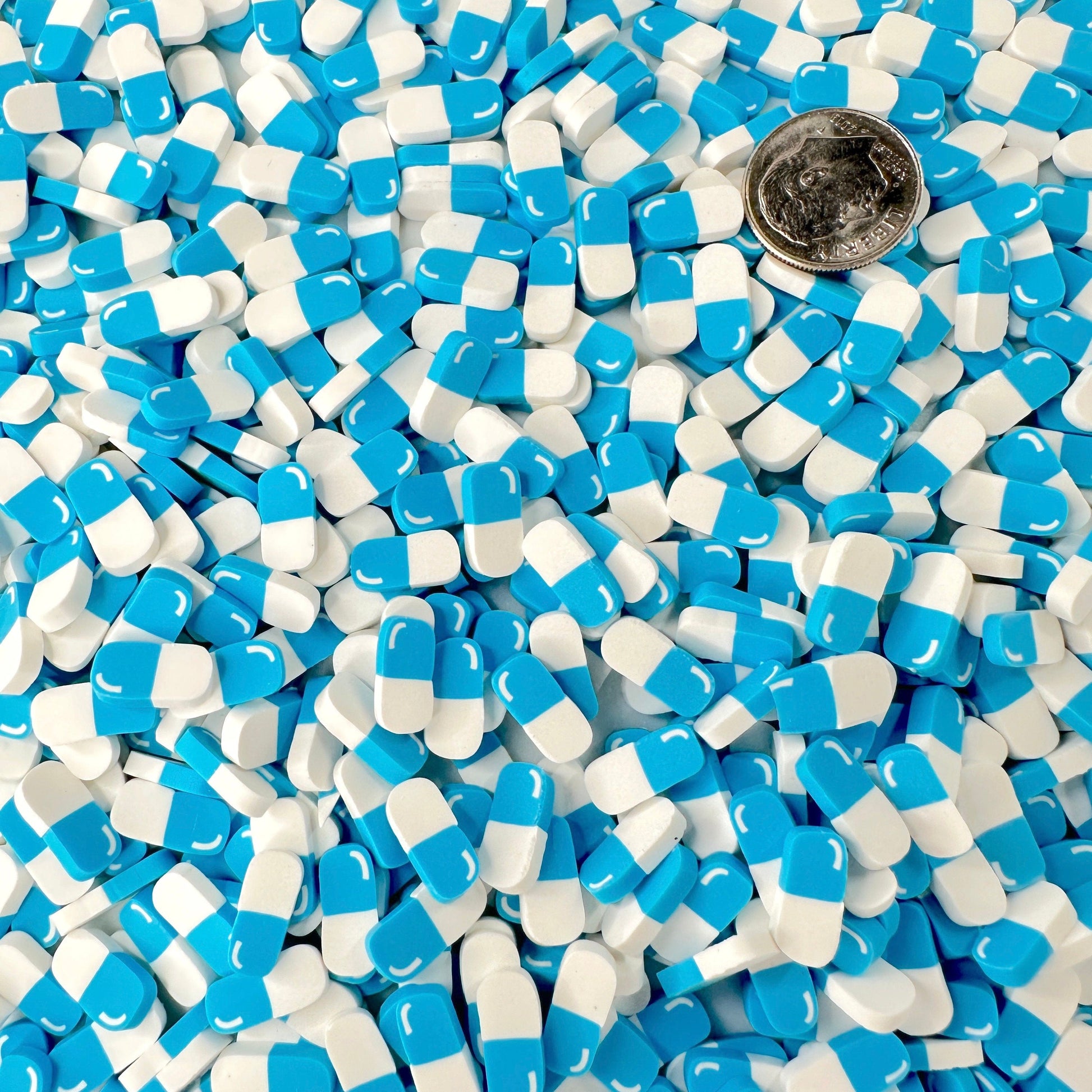 FAKE 5MM/10MM Pastel Blue Pill, Medical Polymer Clay Sprinkle (NOT EDIBLE)