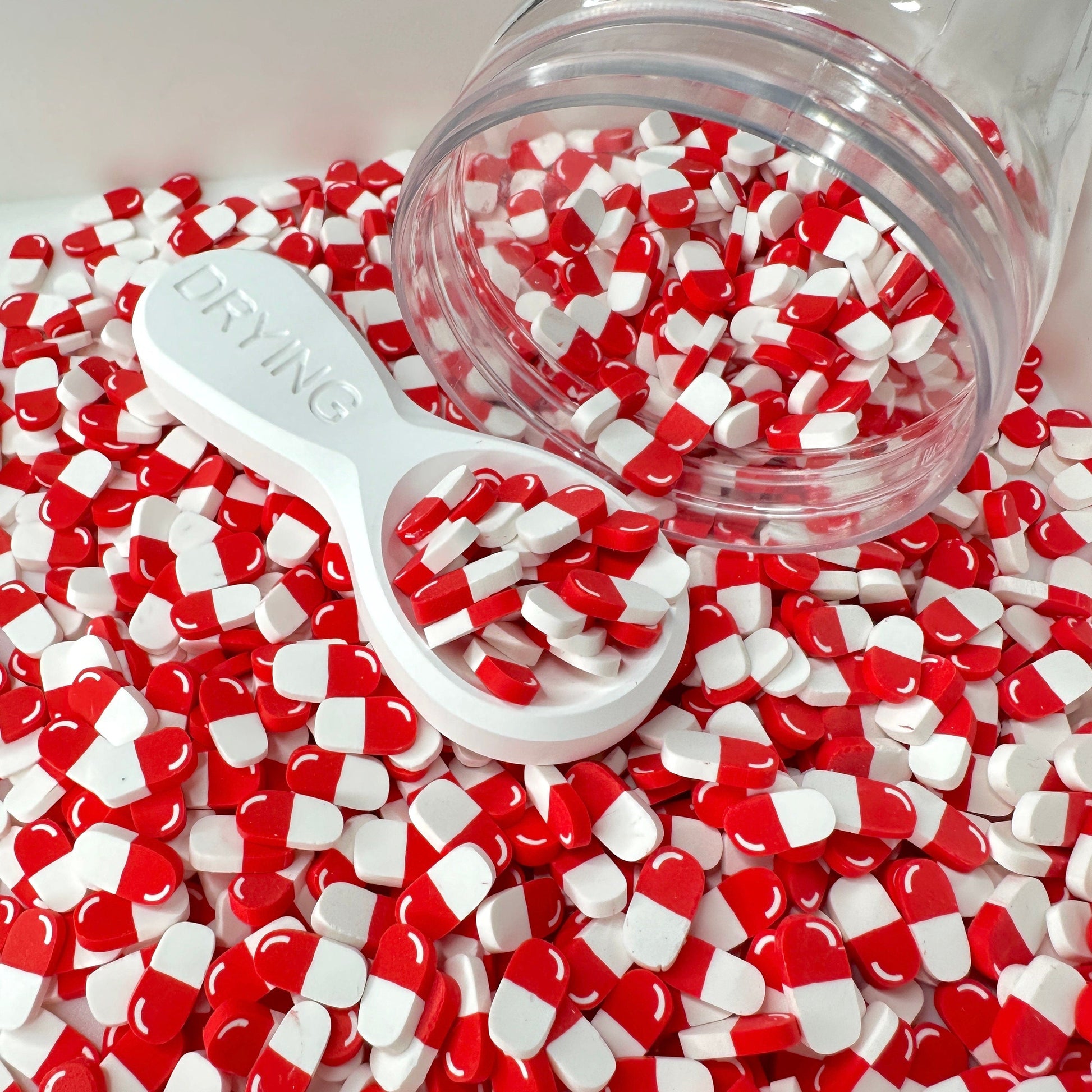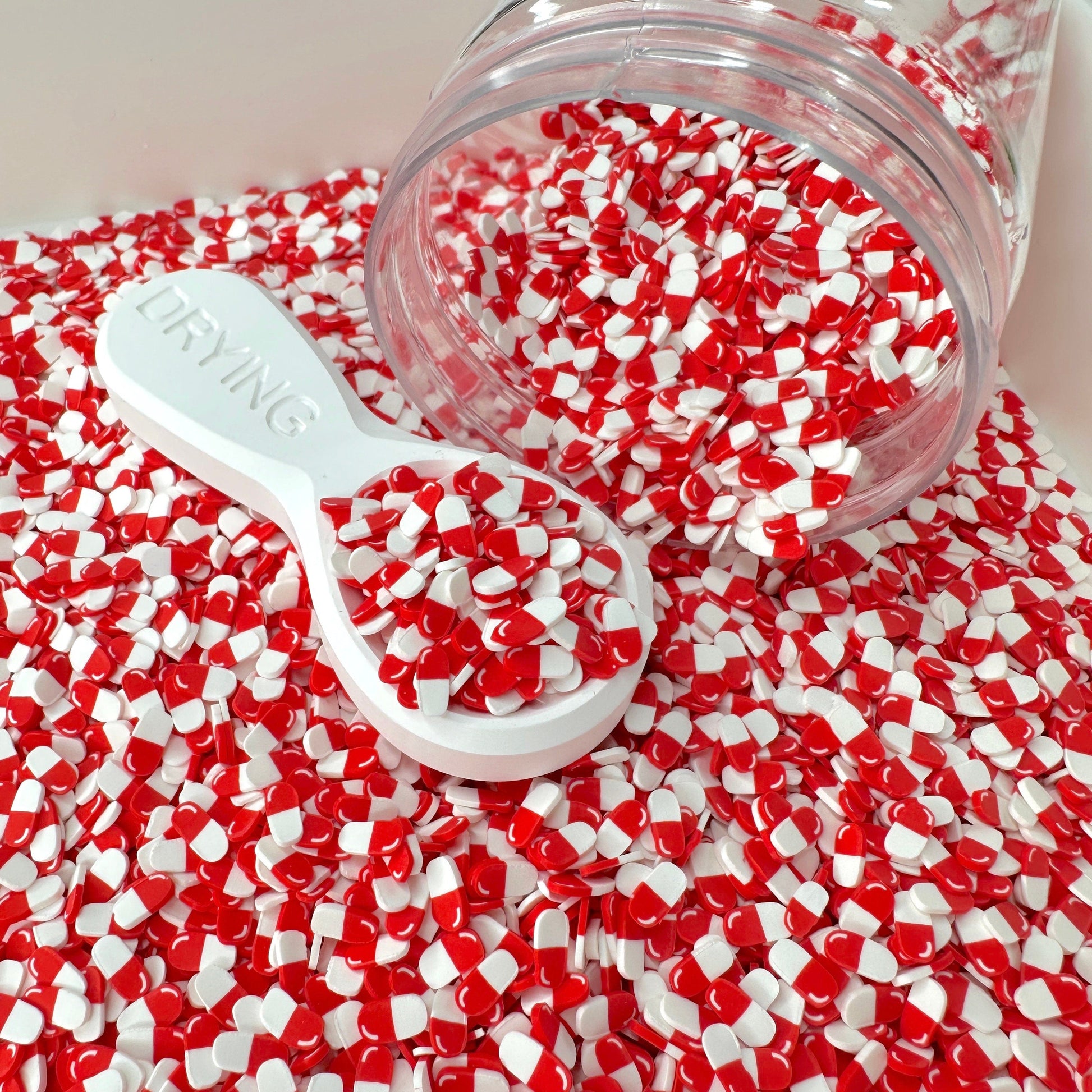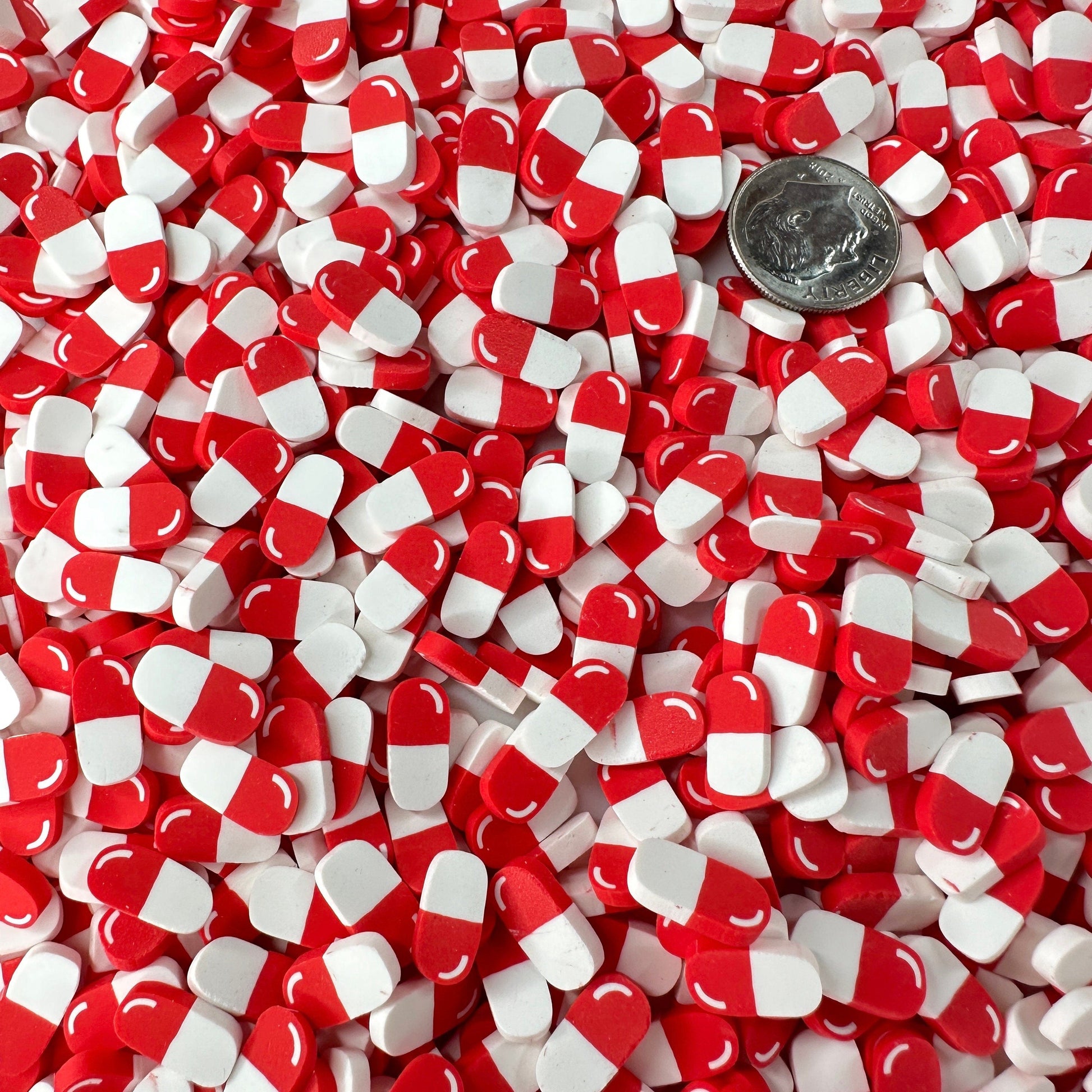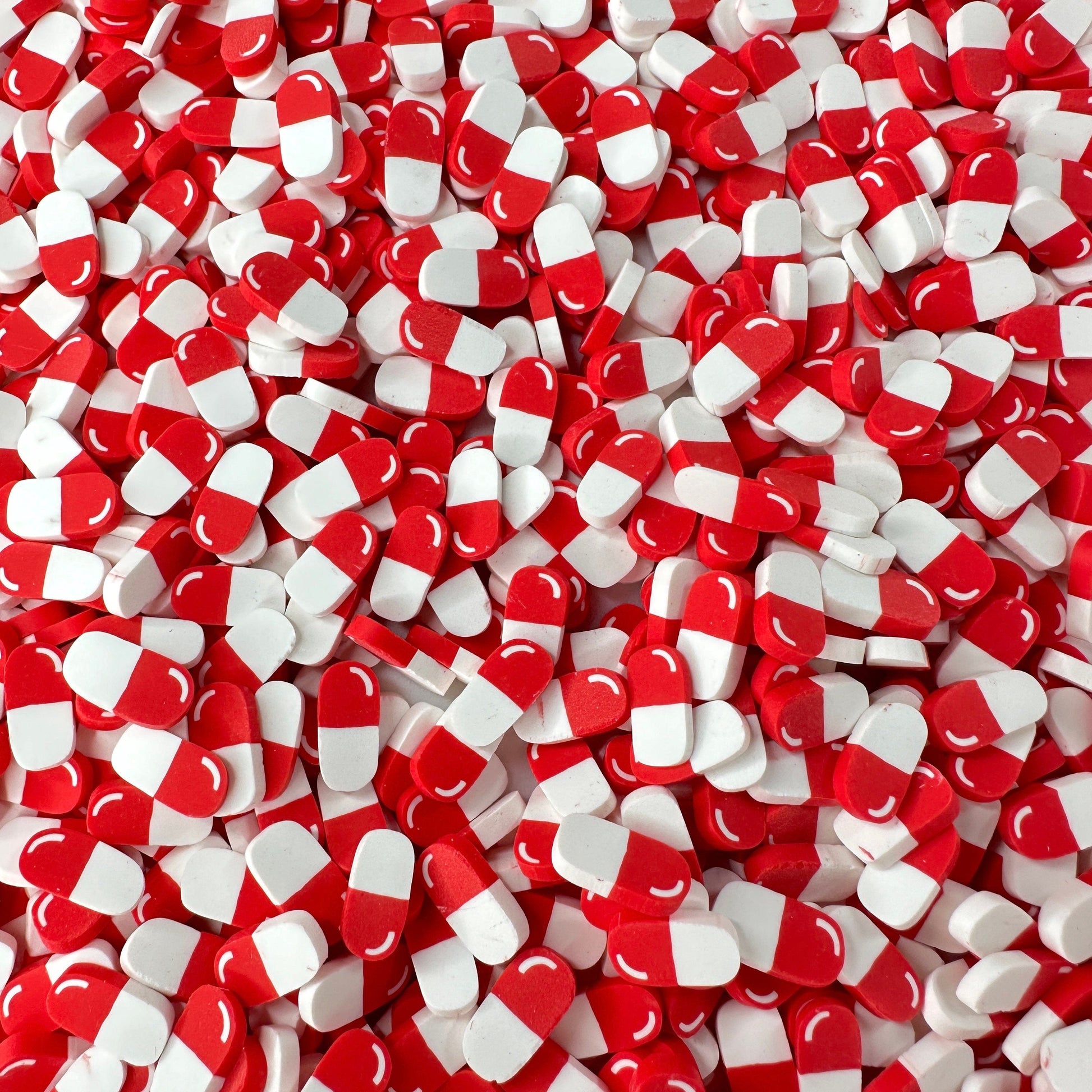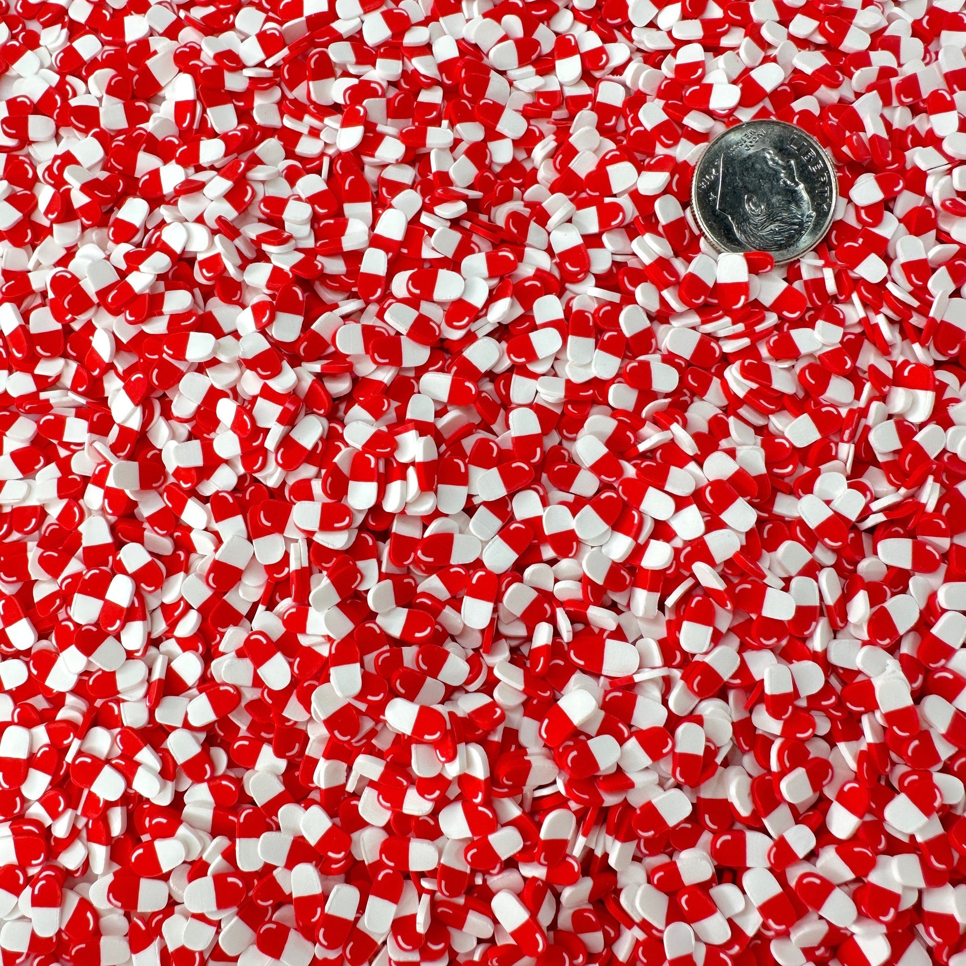FAKE 5MM/10MM Pastel Red Pill, Medical Polymer Clay Sprinkle (NOT EDIBLE)