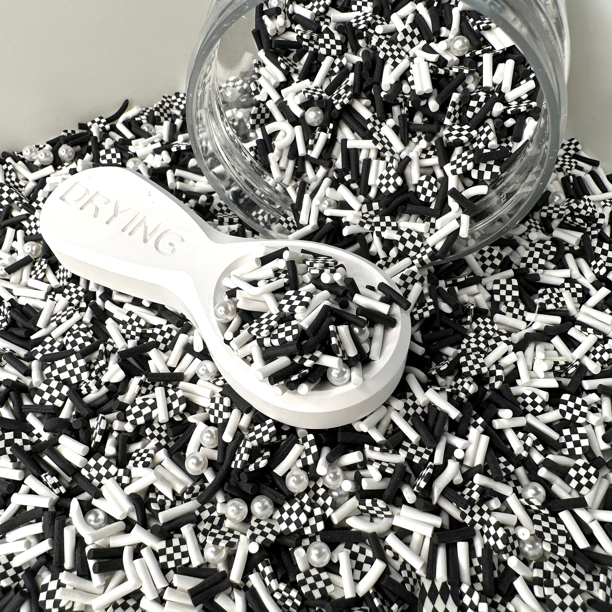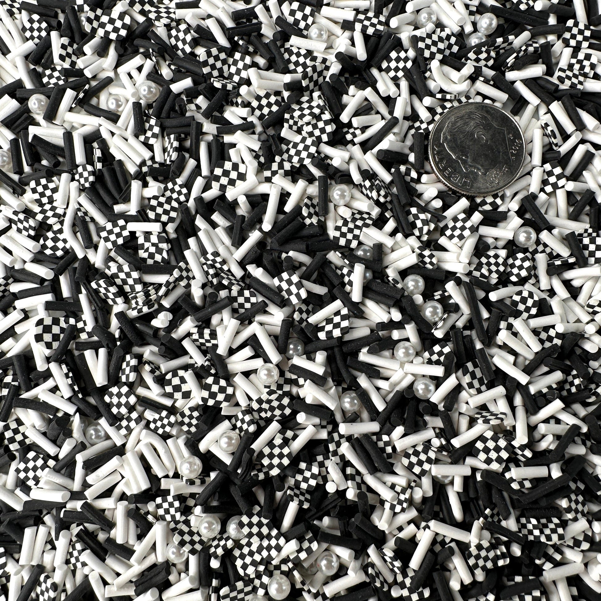 FAKE Back and White Checkerboard Polymer Clay Sprinkle (NOT EDIBLE) D35-27