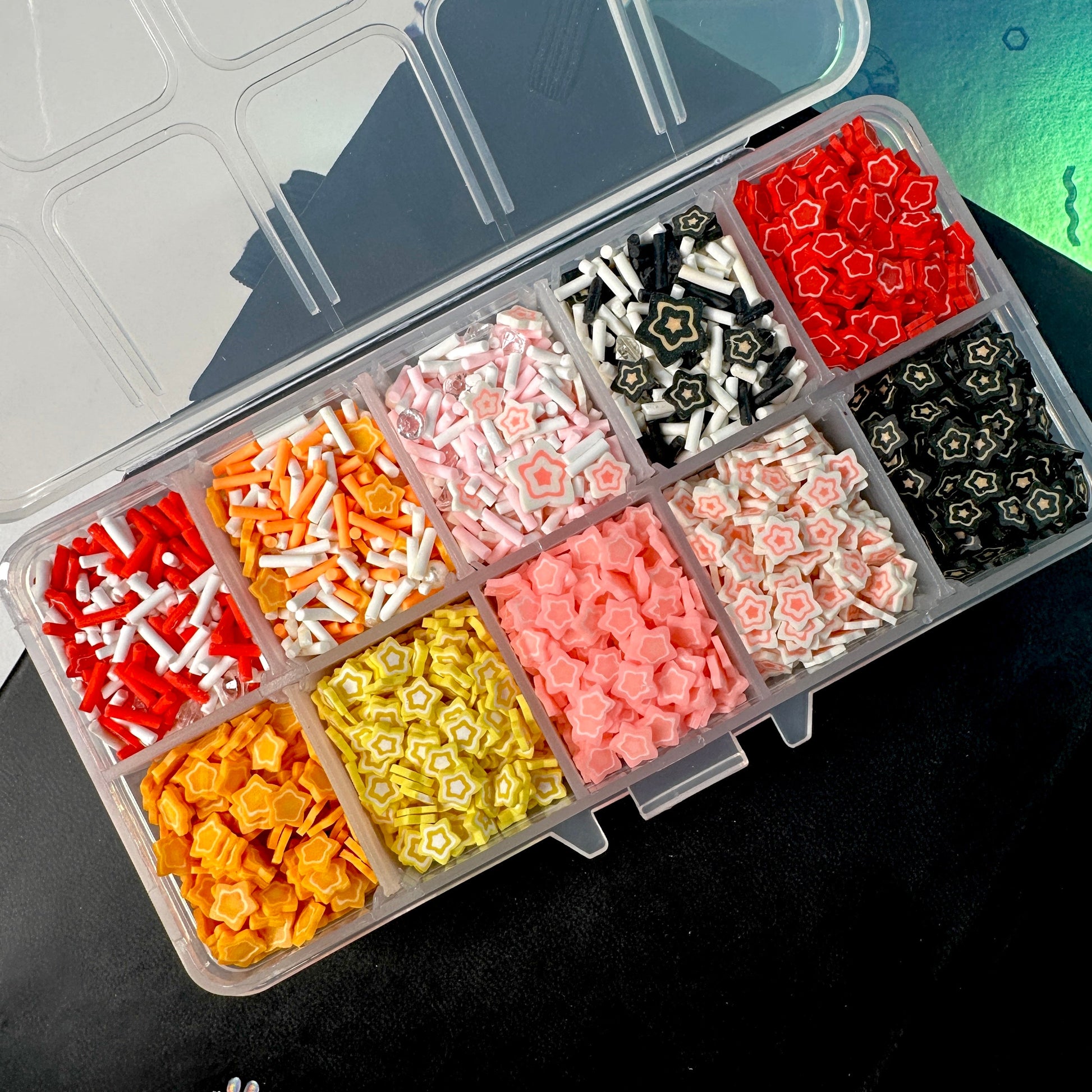 FAKE Rainbow Double Star Themed Polymer Clay Sprinkle Set/Box