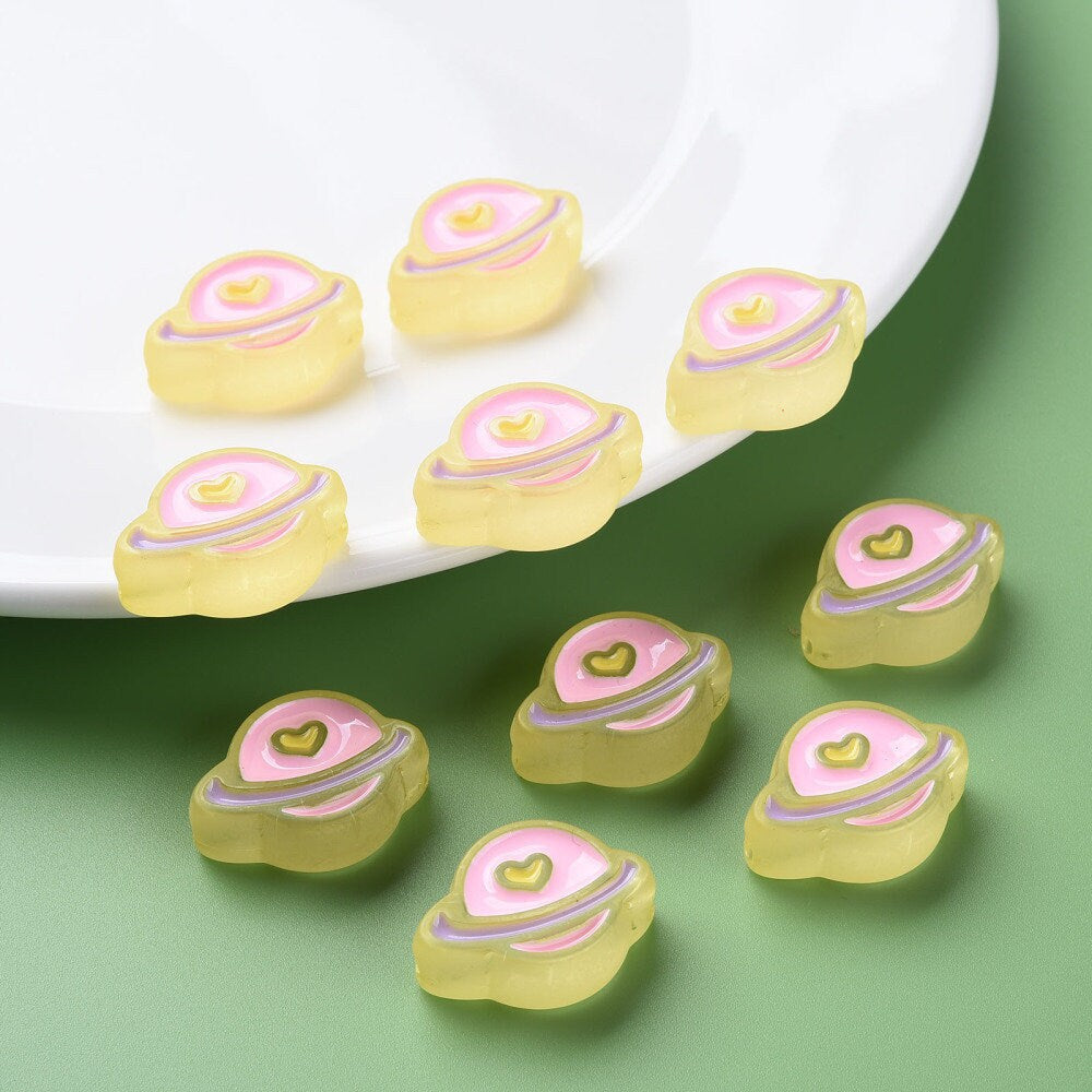 Chunky Frosted Purple, Pink, Yellow, White, Blue Planet Enamel Acrylic Bead