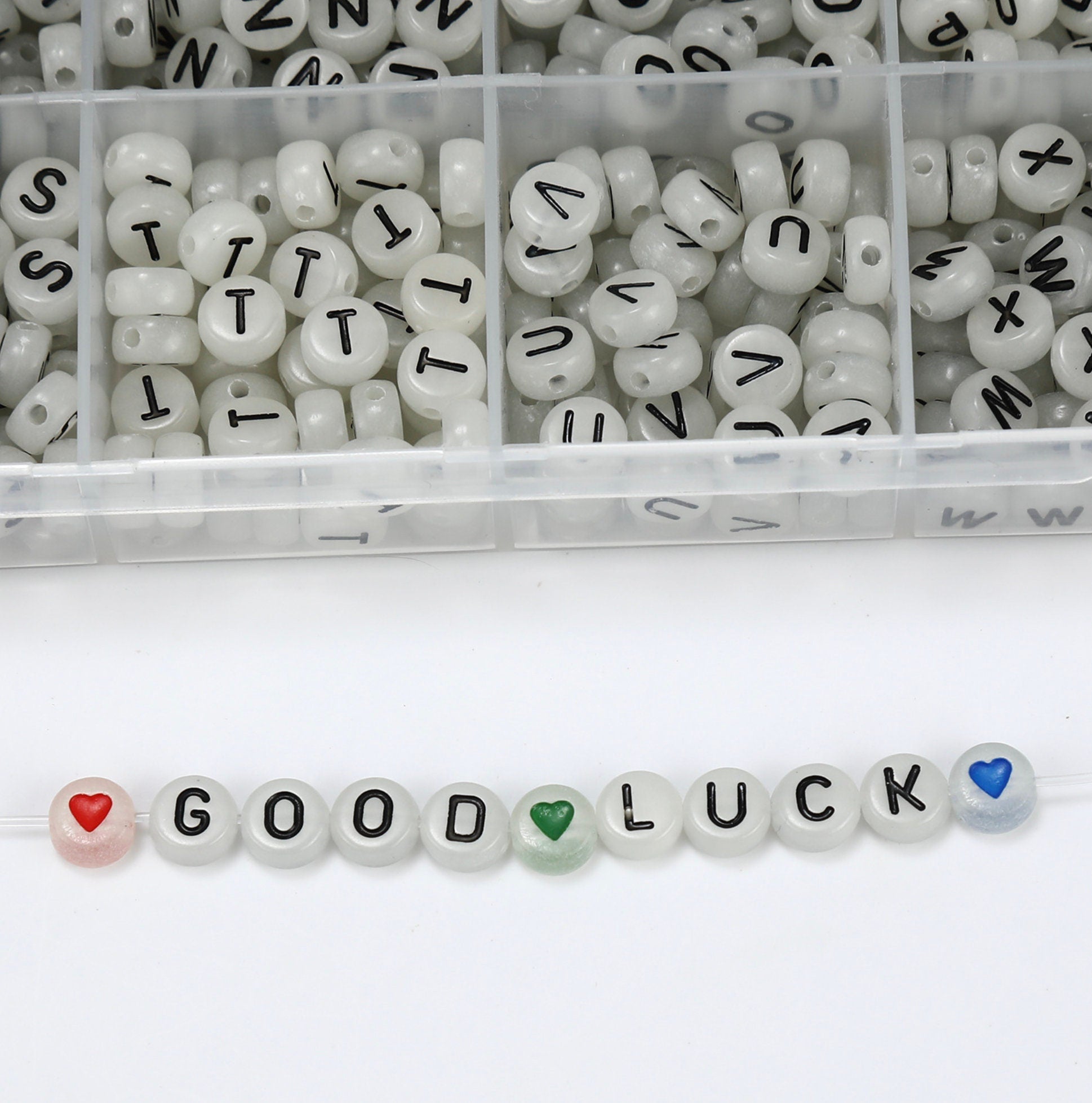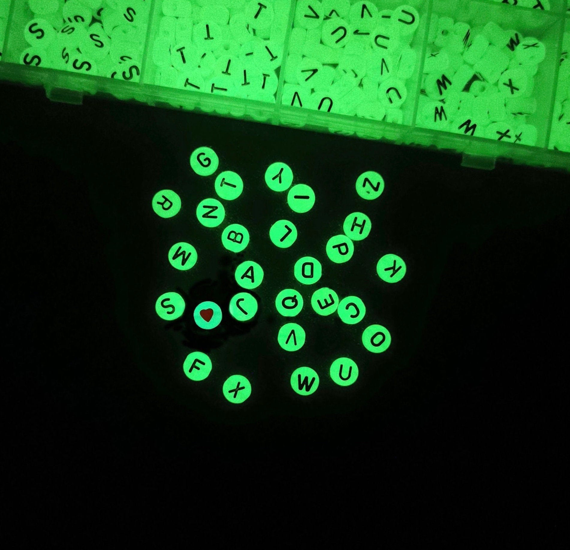 Glow-in-Dark Round Acrylic Black Letter Bead Set (1200 Beads + Elastic String)