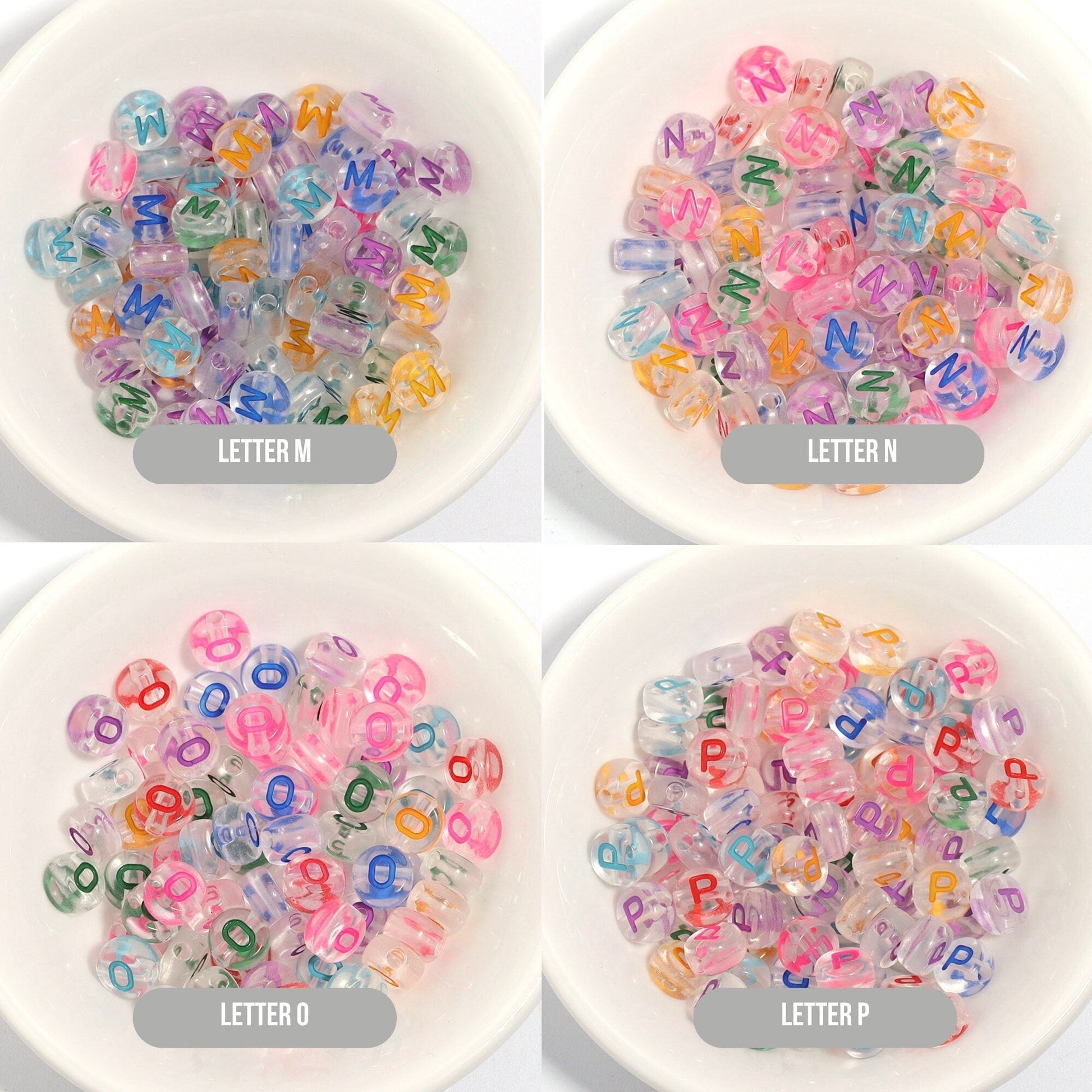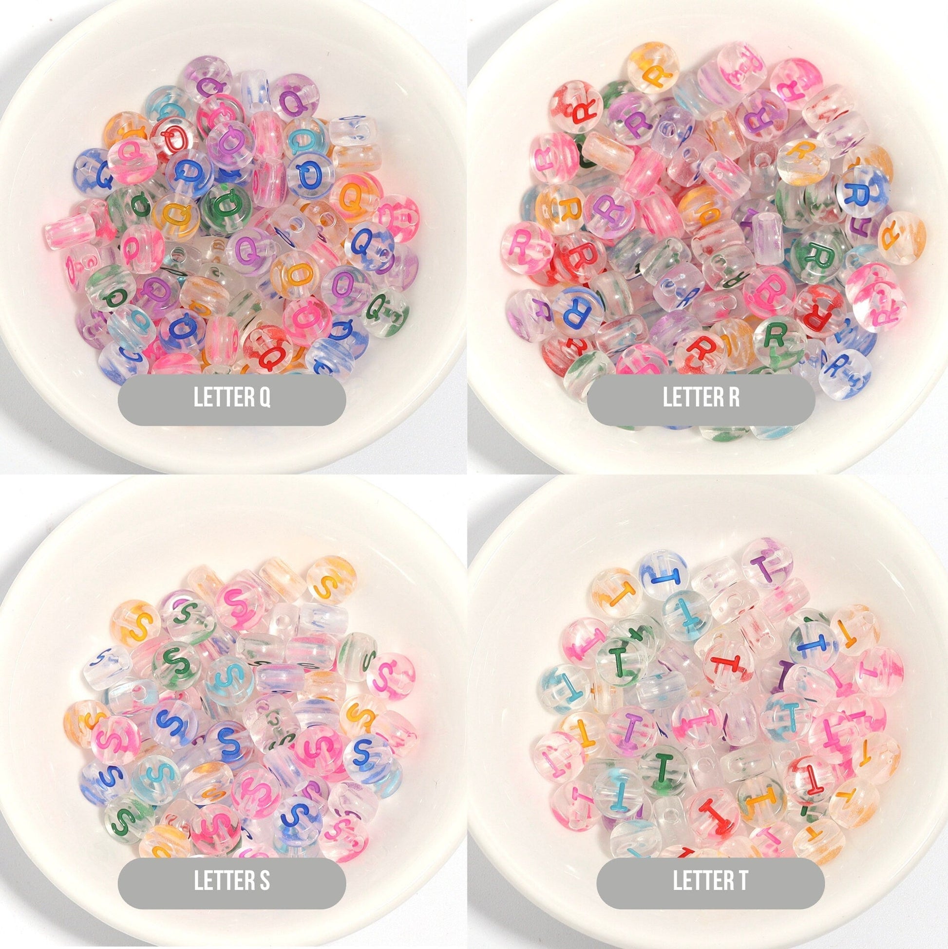 A-Z Alphabet Beads, Transparent Beads with Random Mixed Color Letters (7MM)
