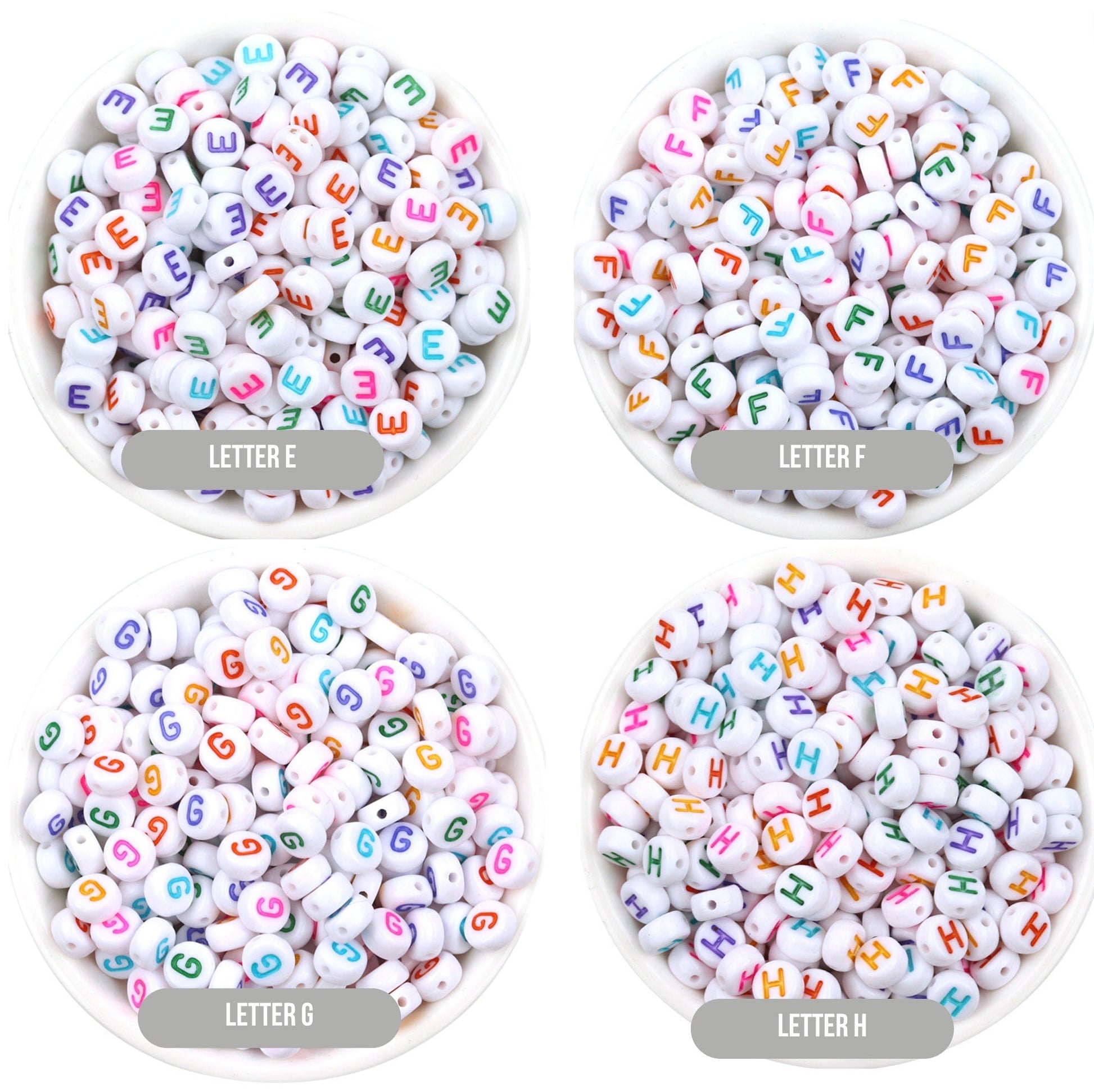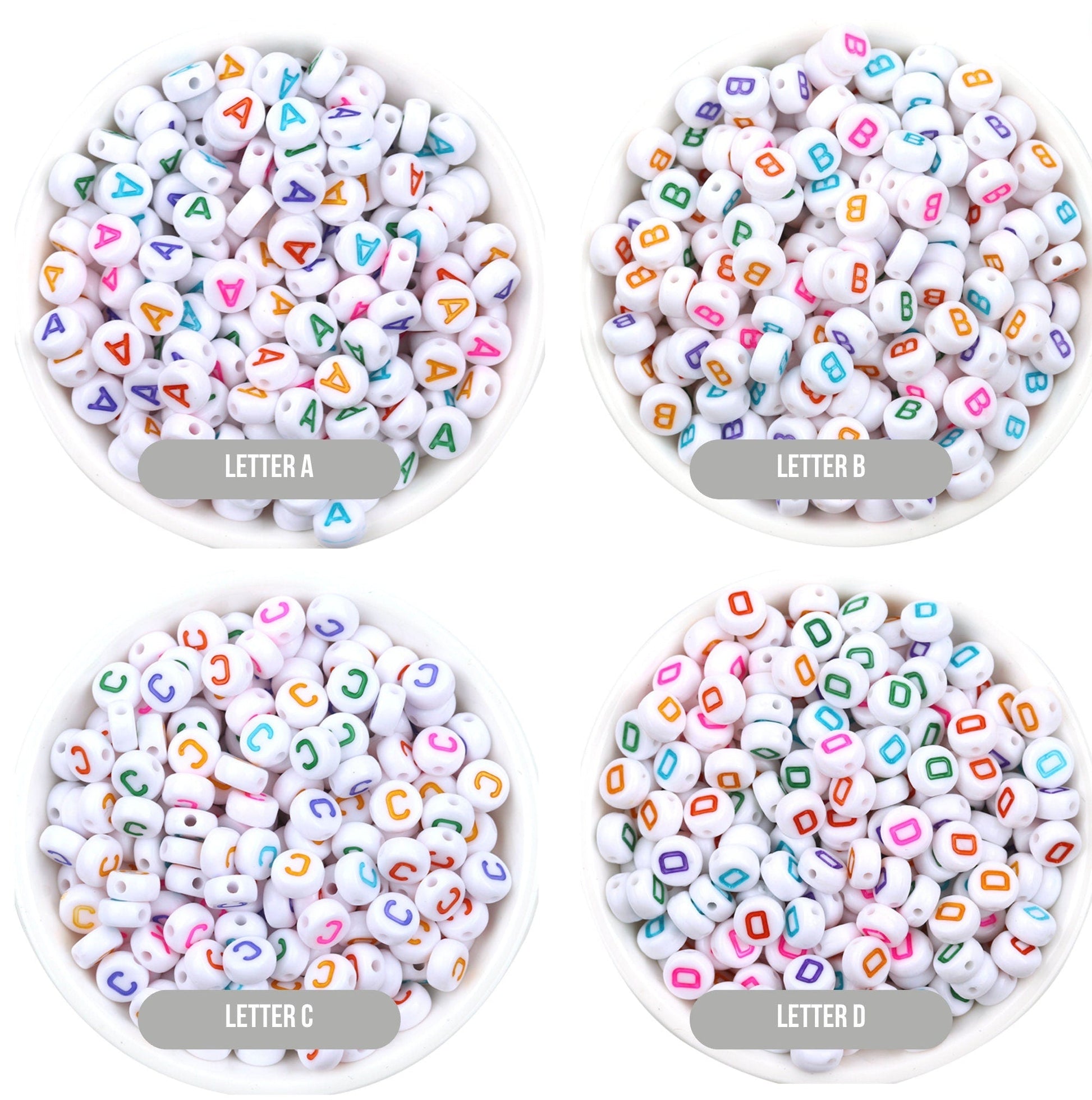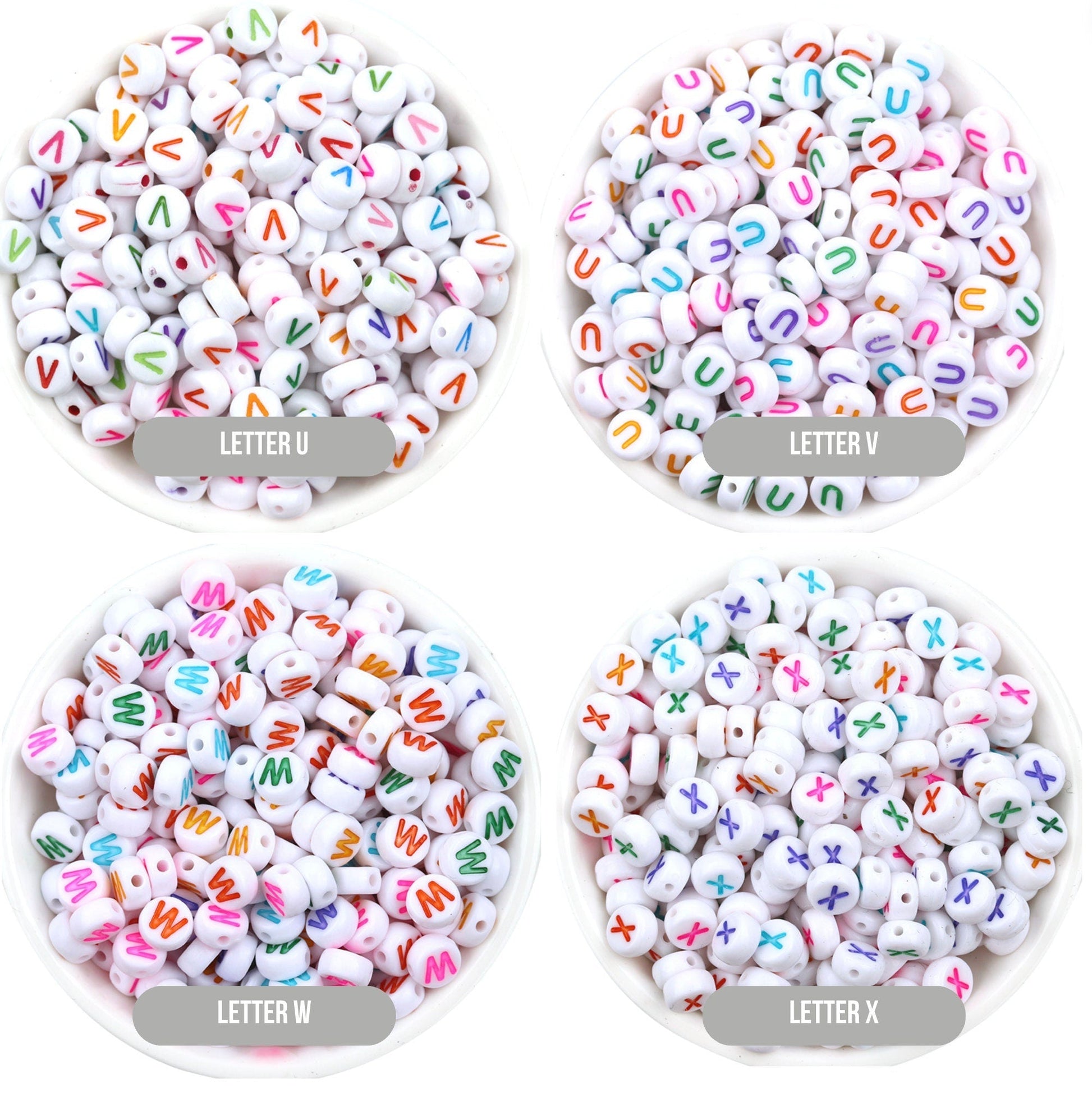 Letter A-Z Alphabet Beads, White beads with Multi Colored Letters (7MM)
