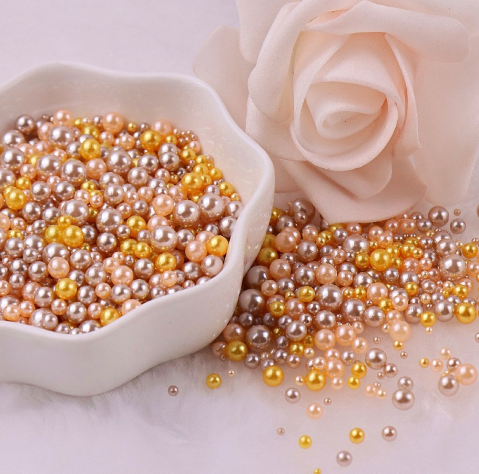 FAKE Mixed No Hole Gold Brown Pearls (1.5mm-5mm; NOT EDIBLE) D12-14