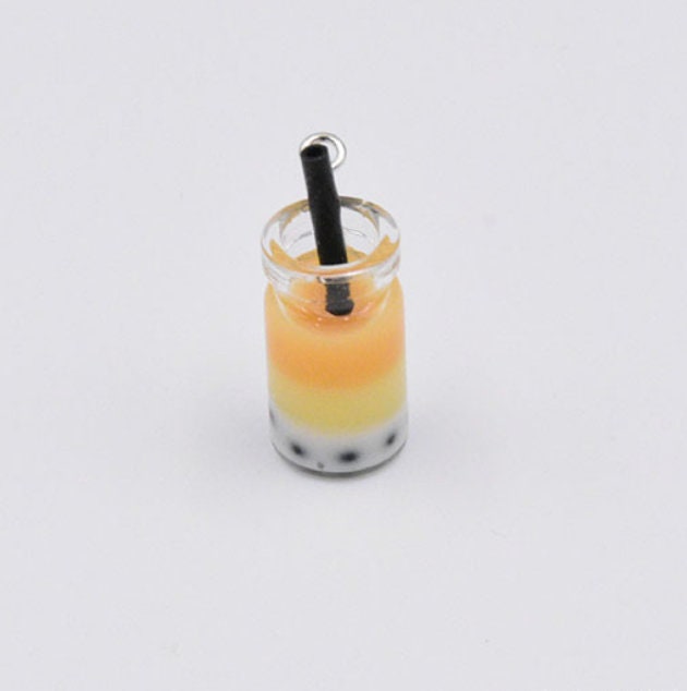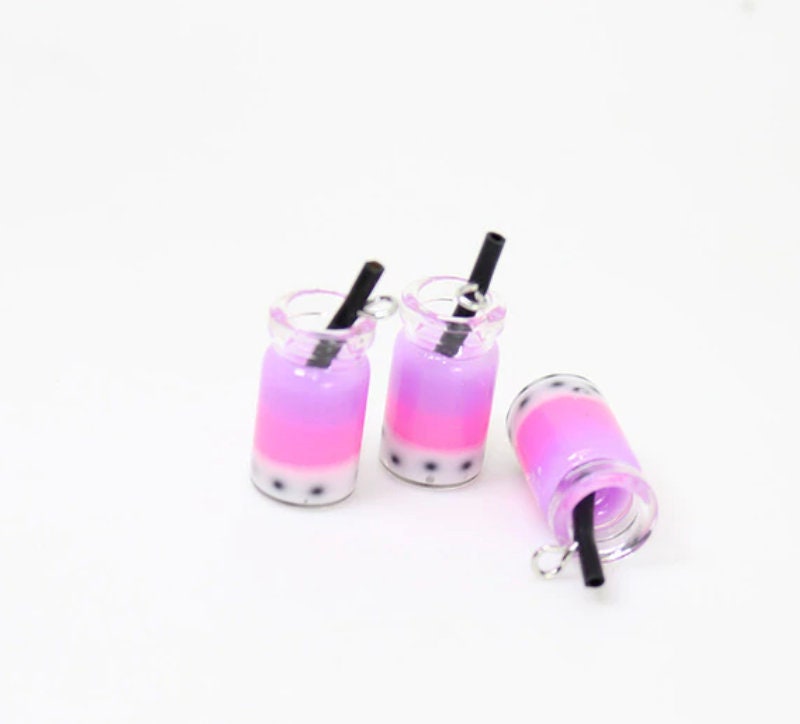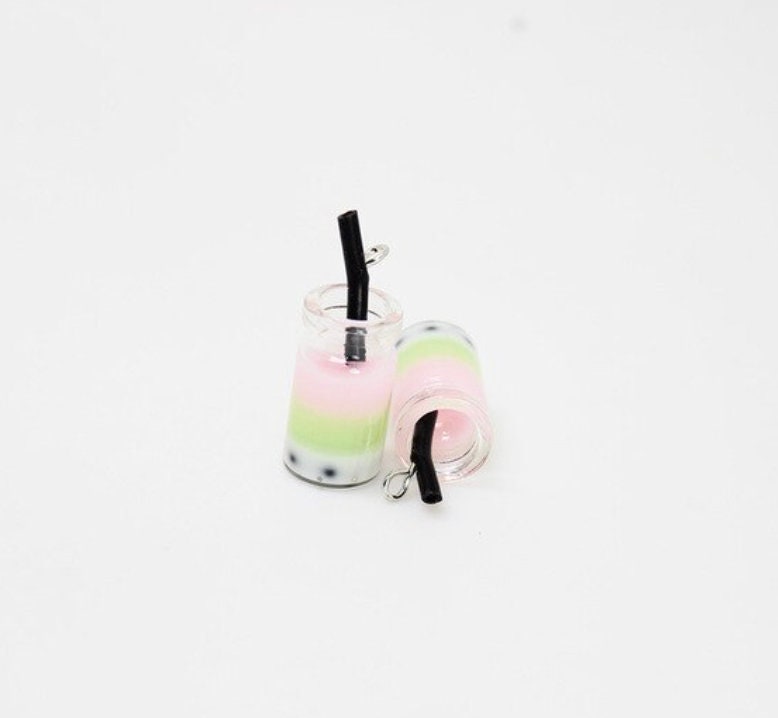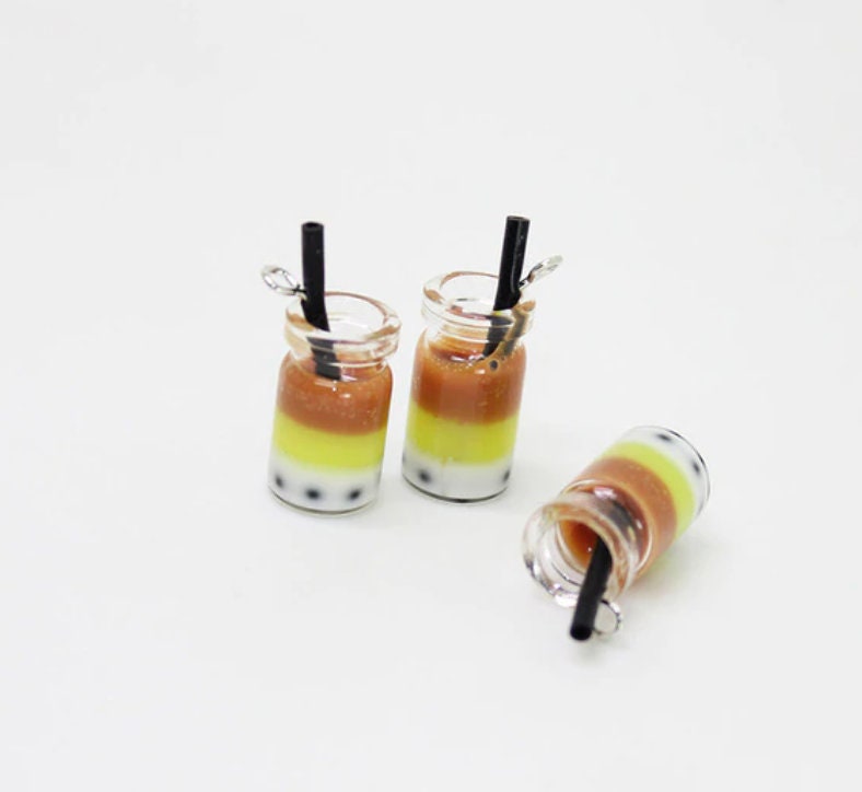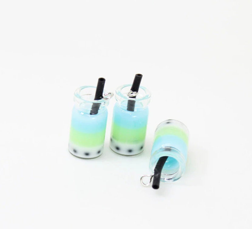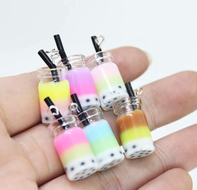 Multicolored Resin Bubble Tea Bottle Charm with Eye Pin (28mm x 10mm)