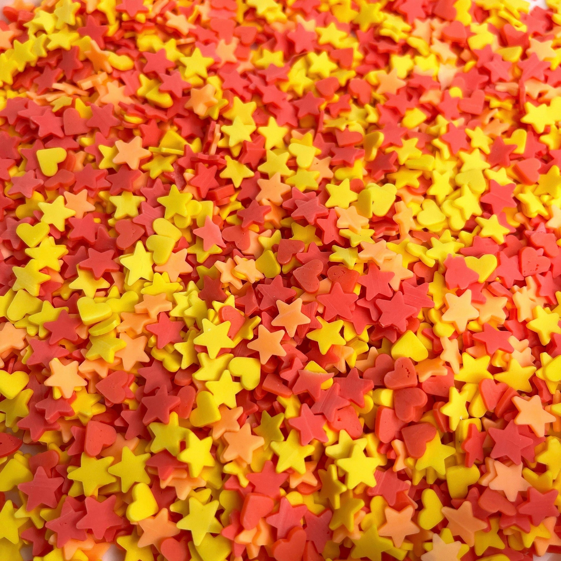 FAKE Orange and Yellow Star Heart Polymer Clay Sprinkle Mix (NOT EDIBLE) D32-18
