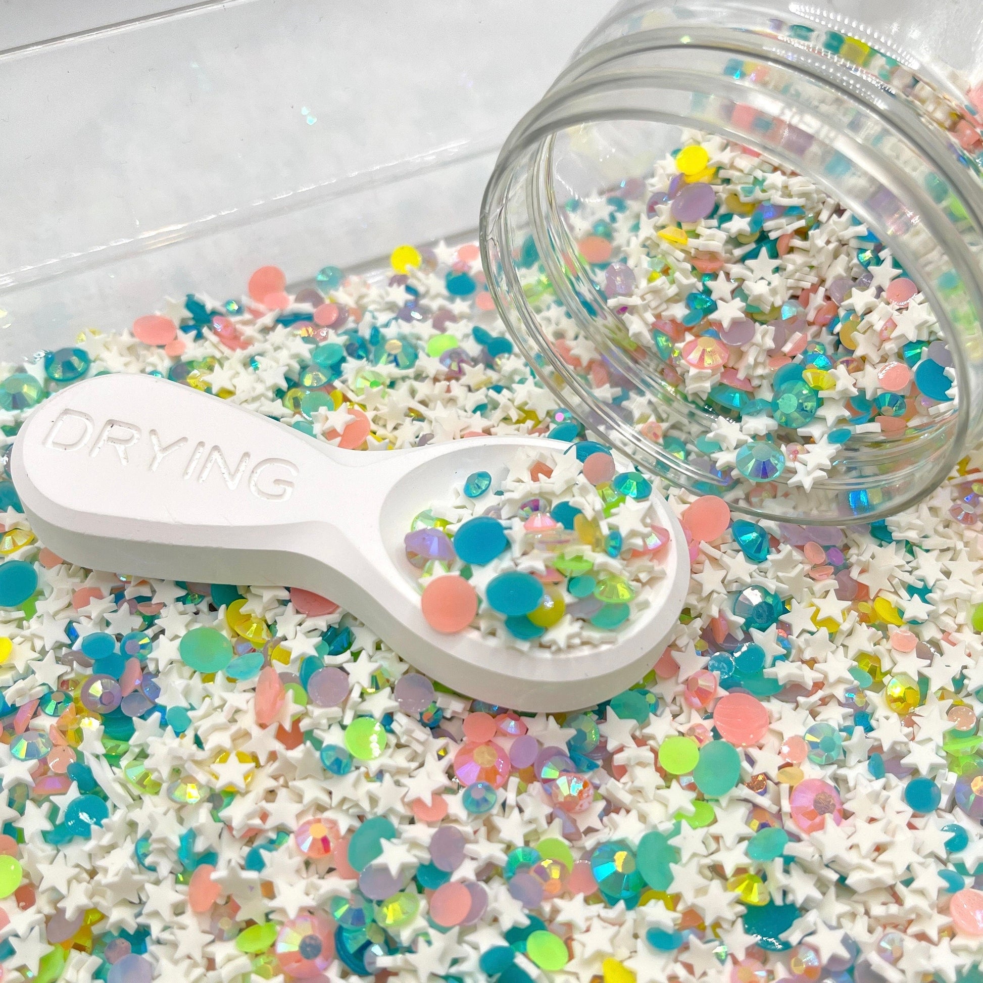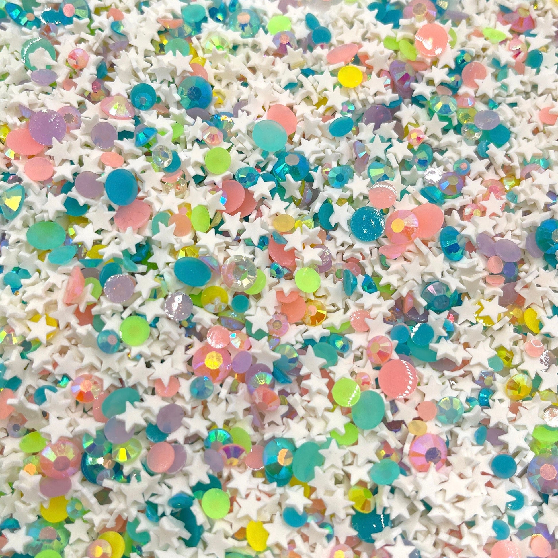 Any mixes that contain pearls, rhinestones, and/or thick-cut sprinkles (usually 10MM size) may be heavier than plain sprinkles.