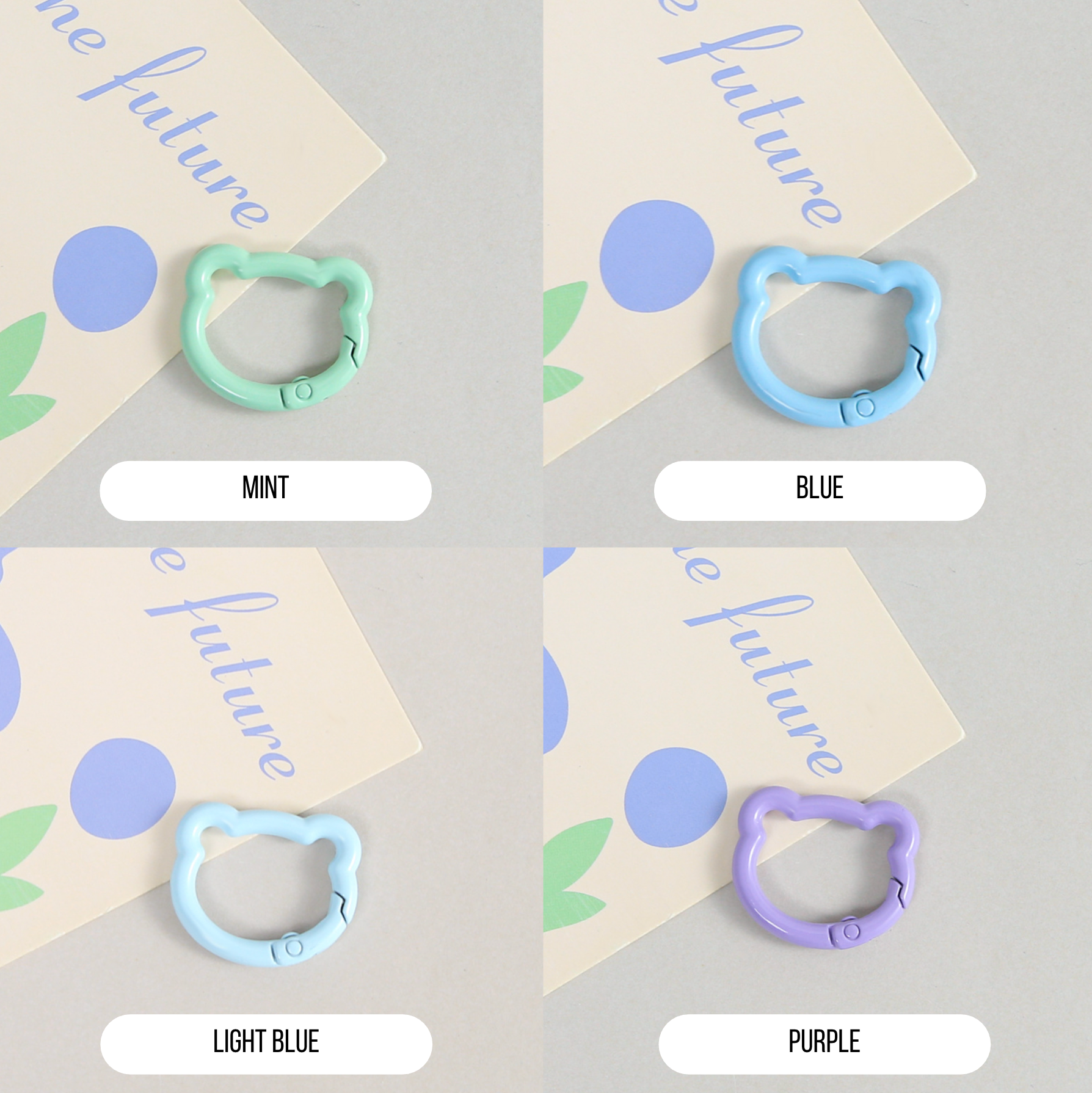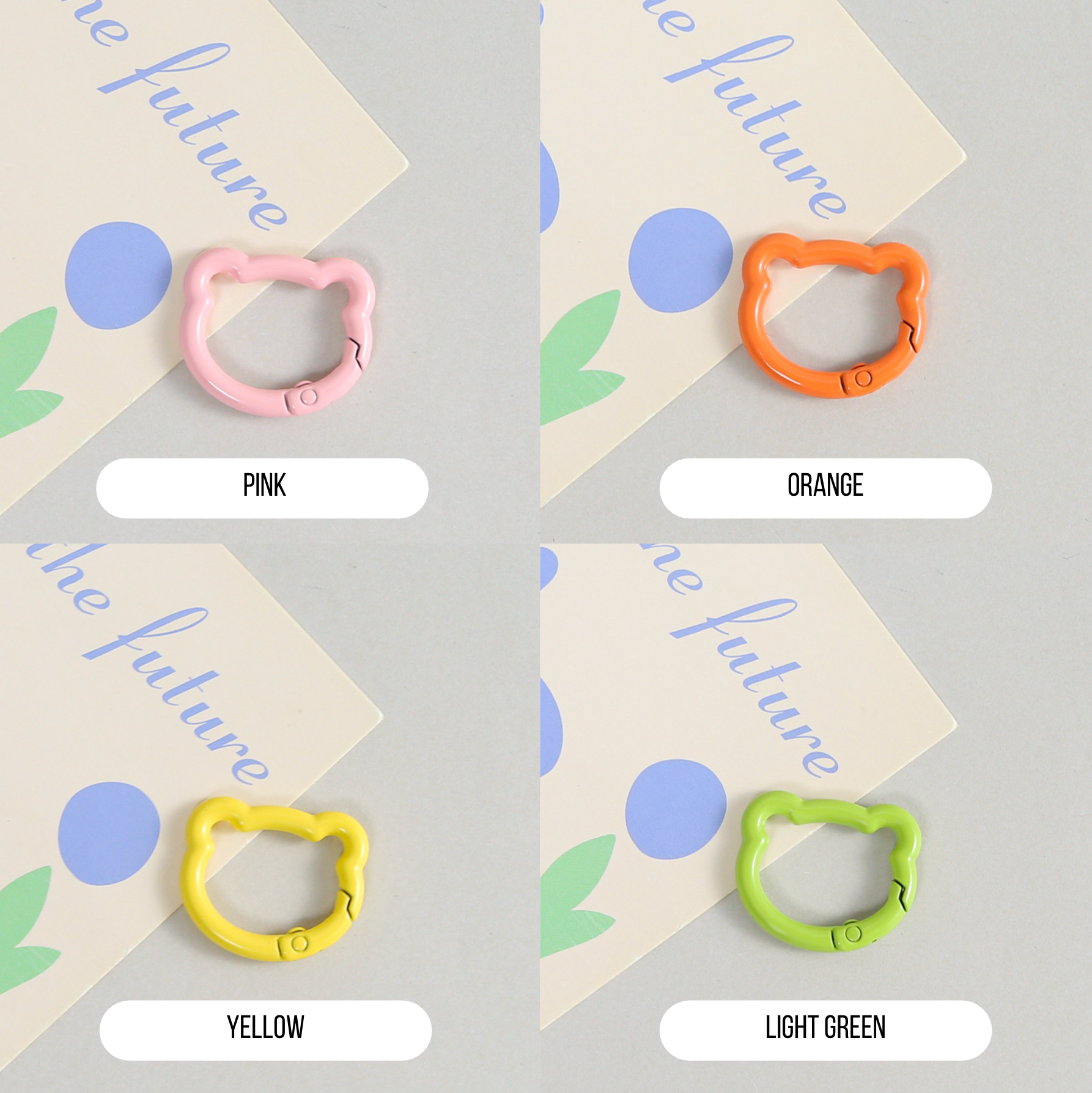 Pastel Spray Painted Metal Bear Head Shaped Key Rings (Color Choices Available)