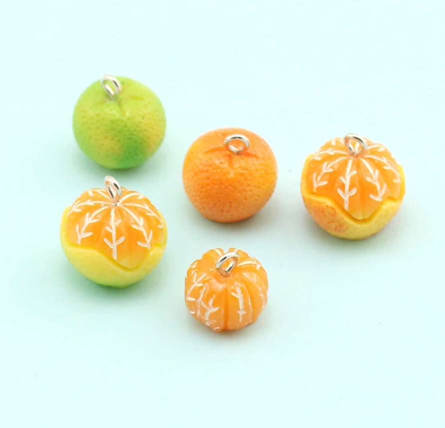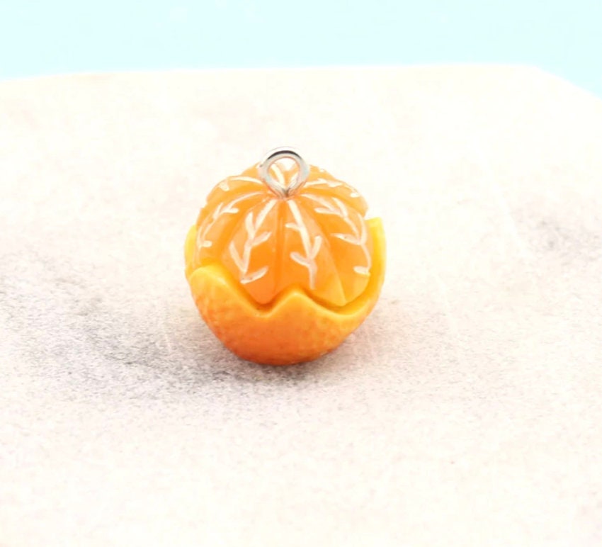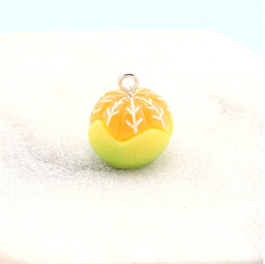 Peeled Orange and Green Oranges Charm with Eye Pin