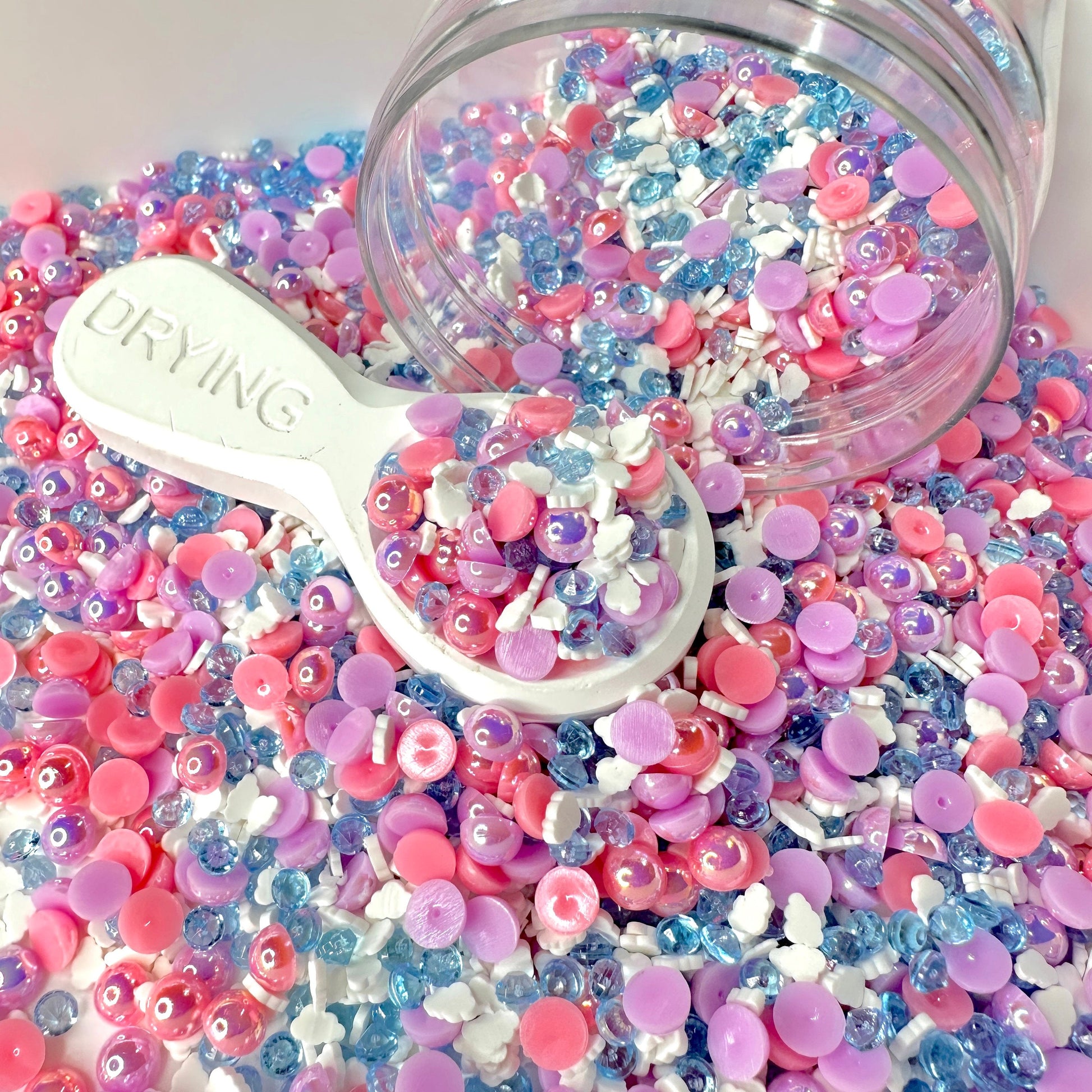 Any mixes that contain pearls, rhinestones, and/or thick-cut sprinkles (usually 10MM size) may be heavier than plain sprinkles.