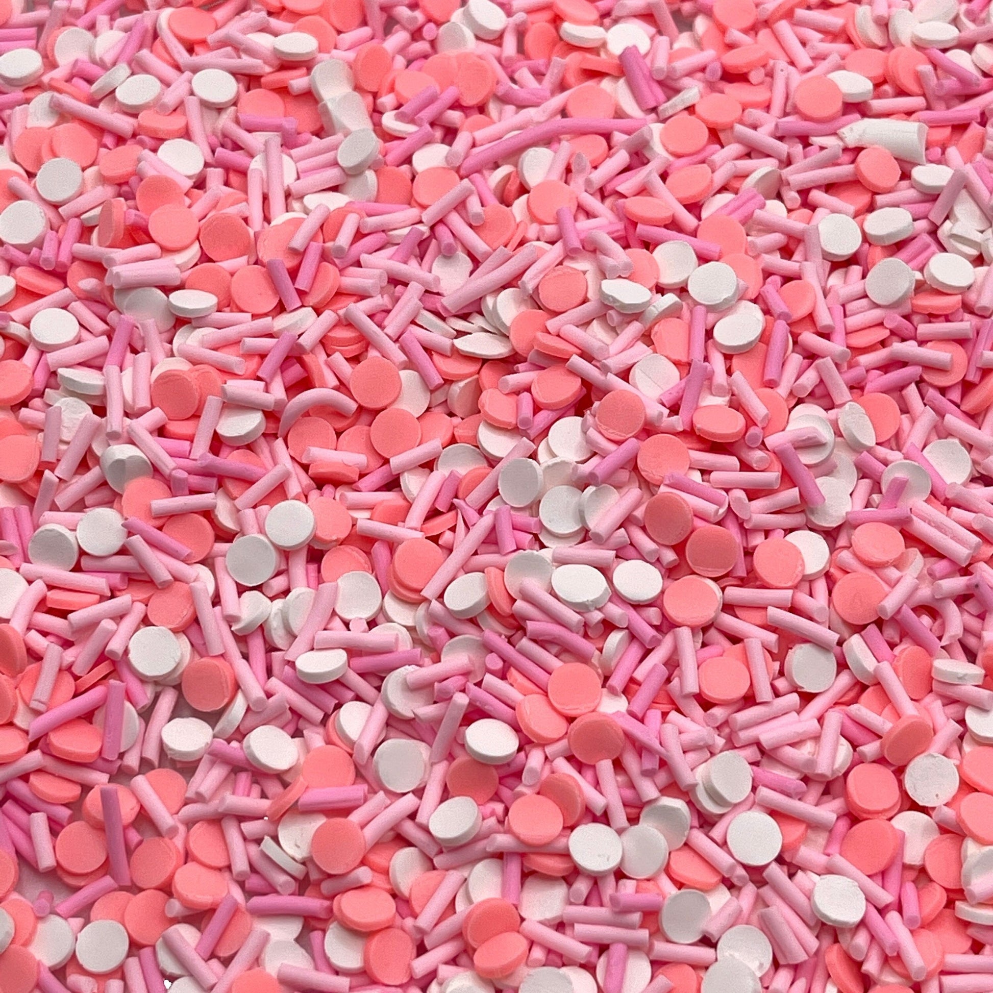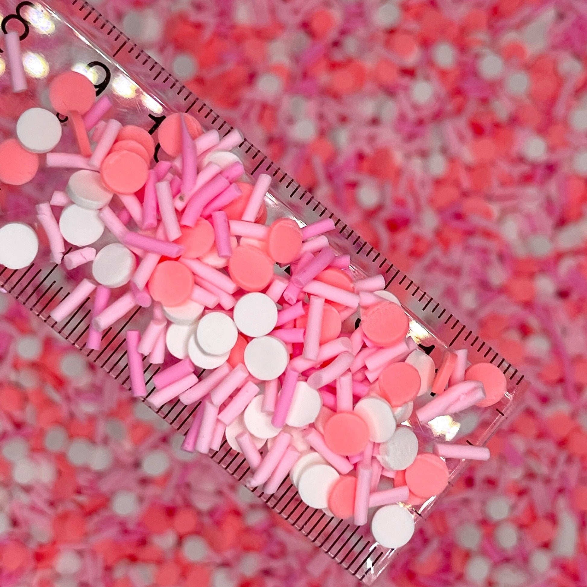 FAKE Pink and White Dot Polymer Clay Sprinkle Mix (NOT EDIBLE) D6-34