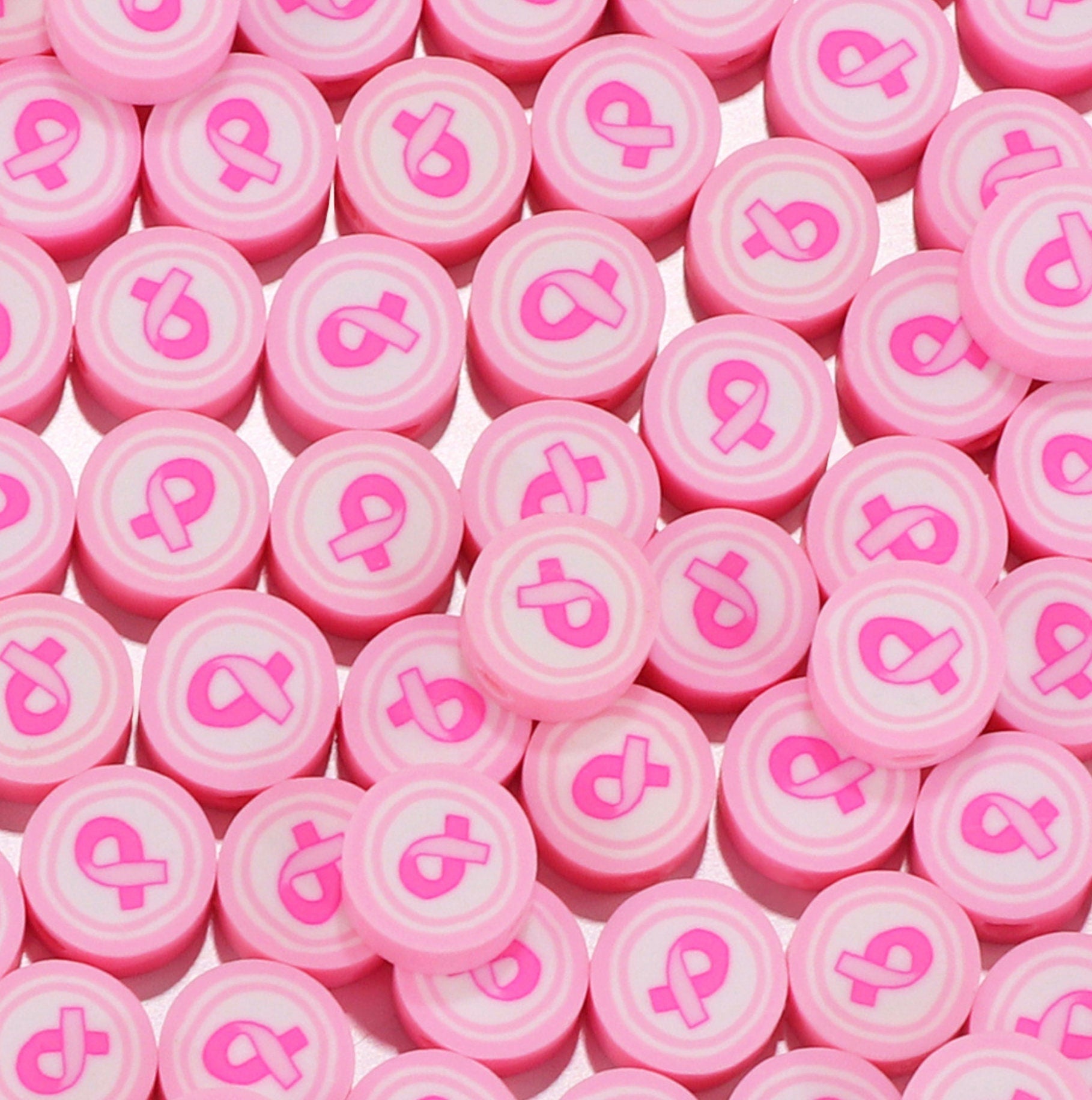 10MM Pink Cancer Ribbon Themed Polymer Clay Beads