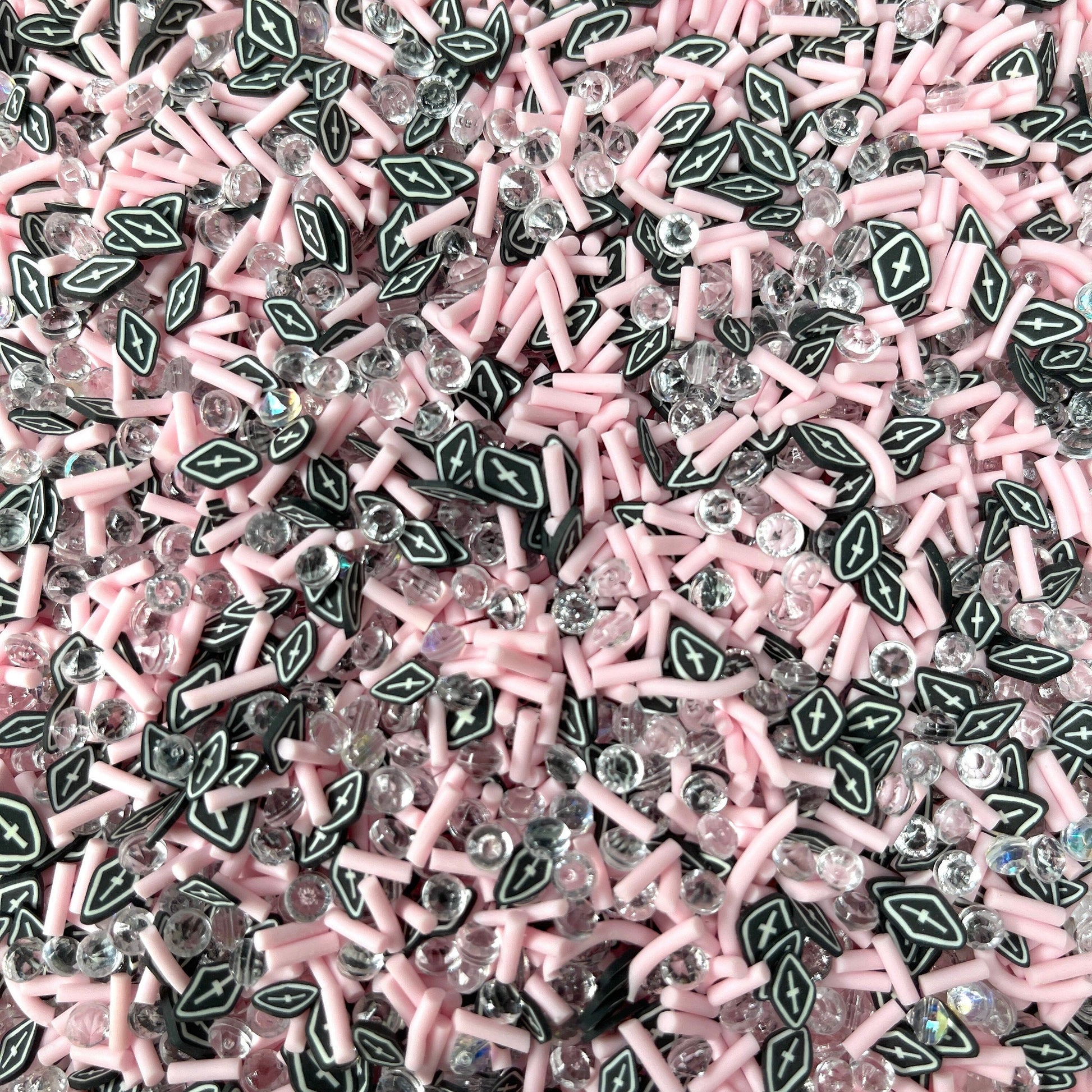 FAKE Pink Death w/Coffin Polymer Clay Sprinkle Rhinestone Mix (NOT EDIBLE)D9-10