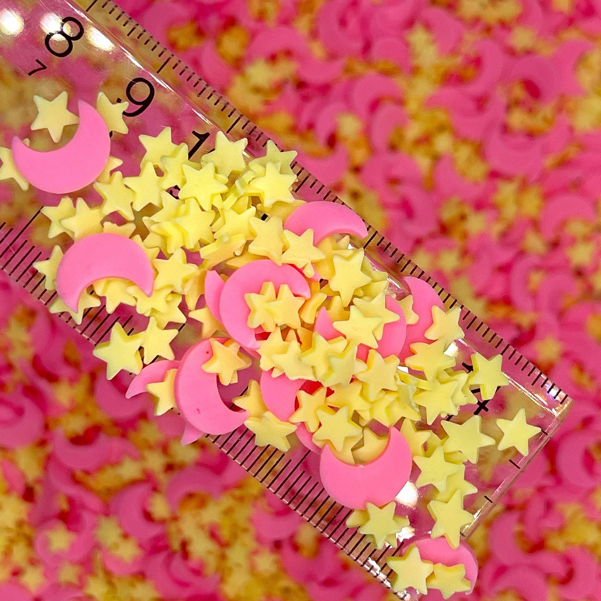 FAKE Pink Moon Yellow Star Polymer Clay Sprinkle Mix (NOT EDIBLE) D10-35