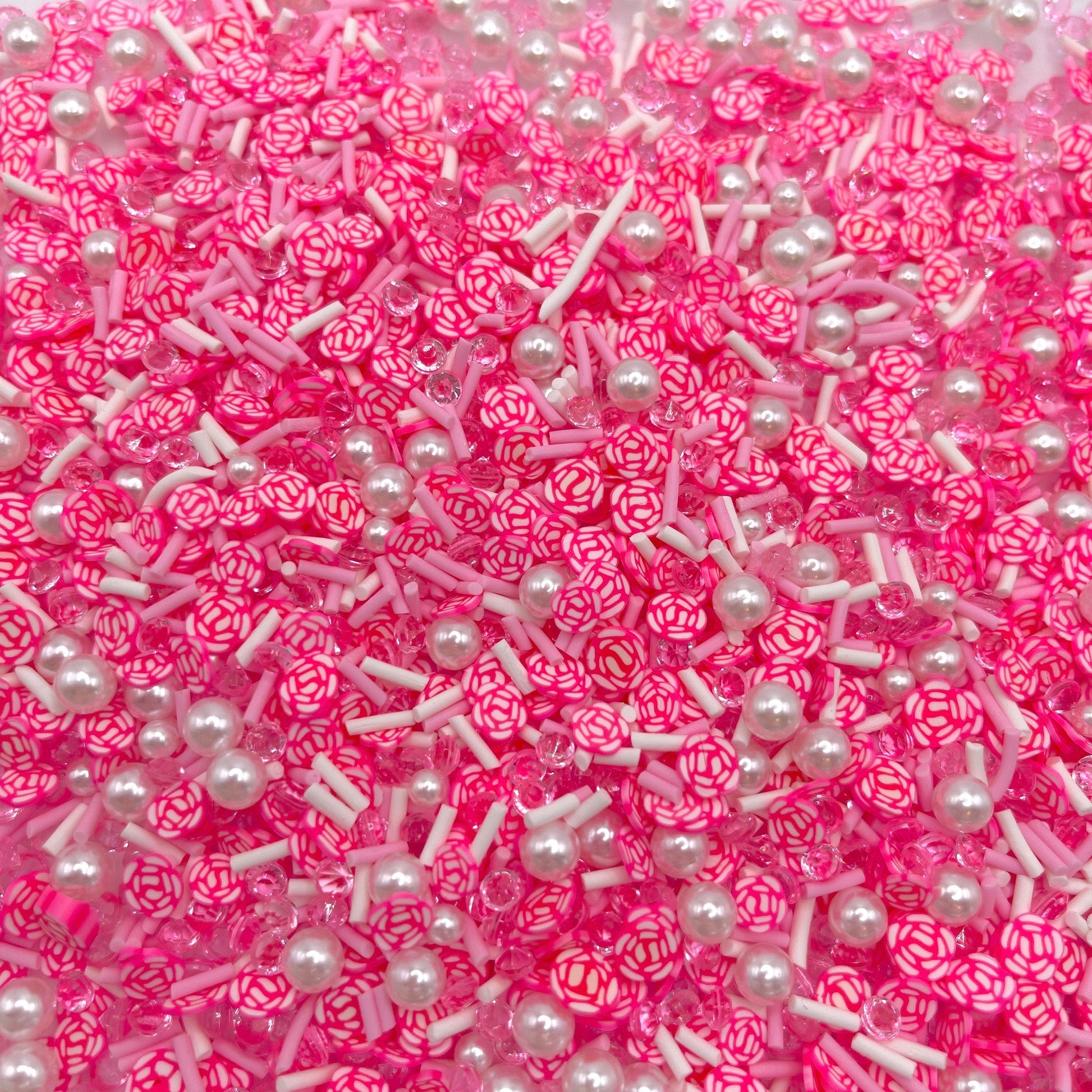 FAKE Pink Rose Pearl, Floral Polymer Clay Sprinkle Mix (NOT EDIBLE) D3-23