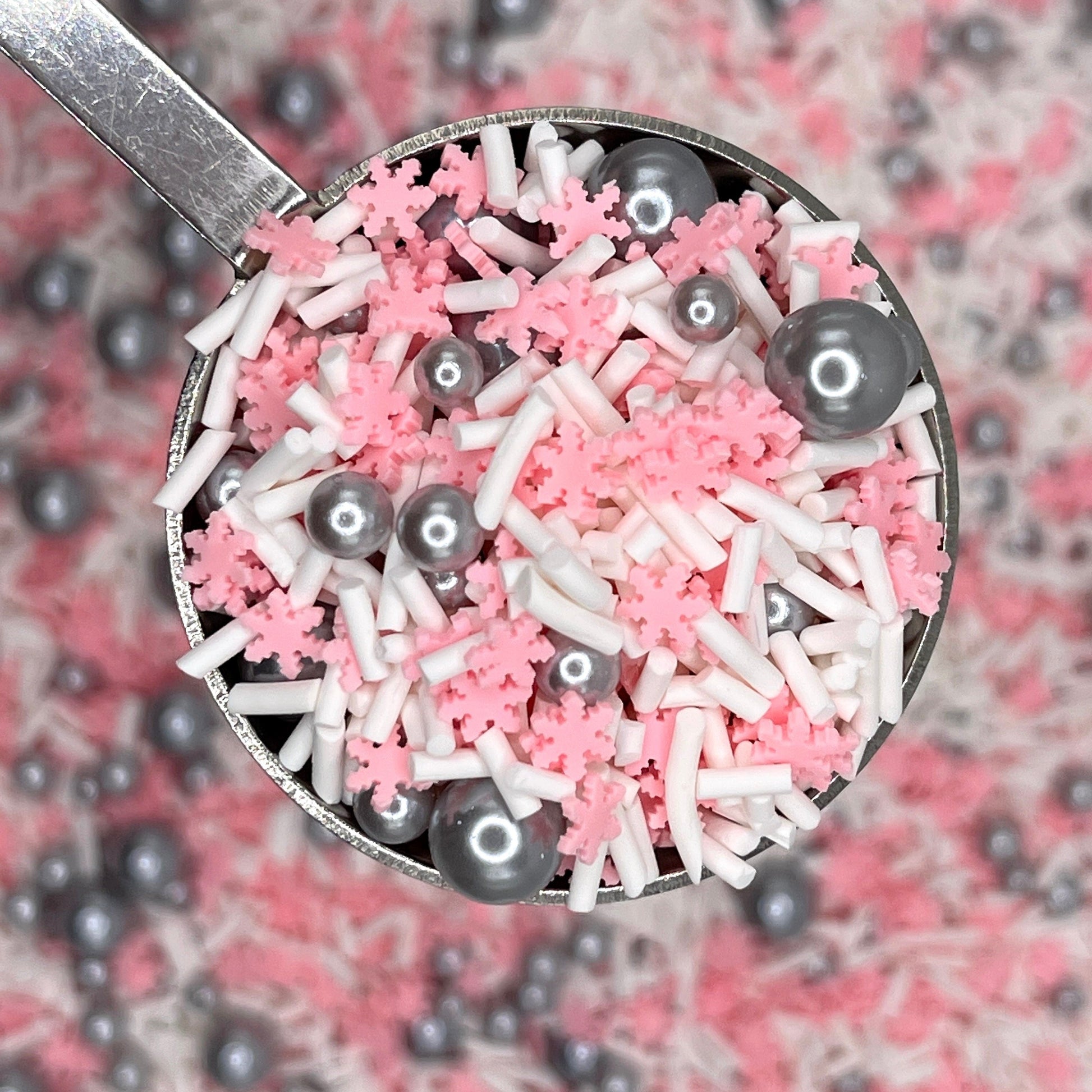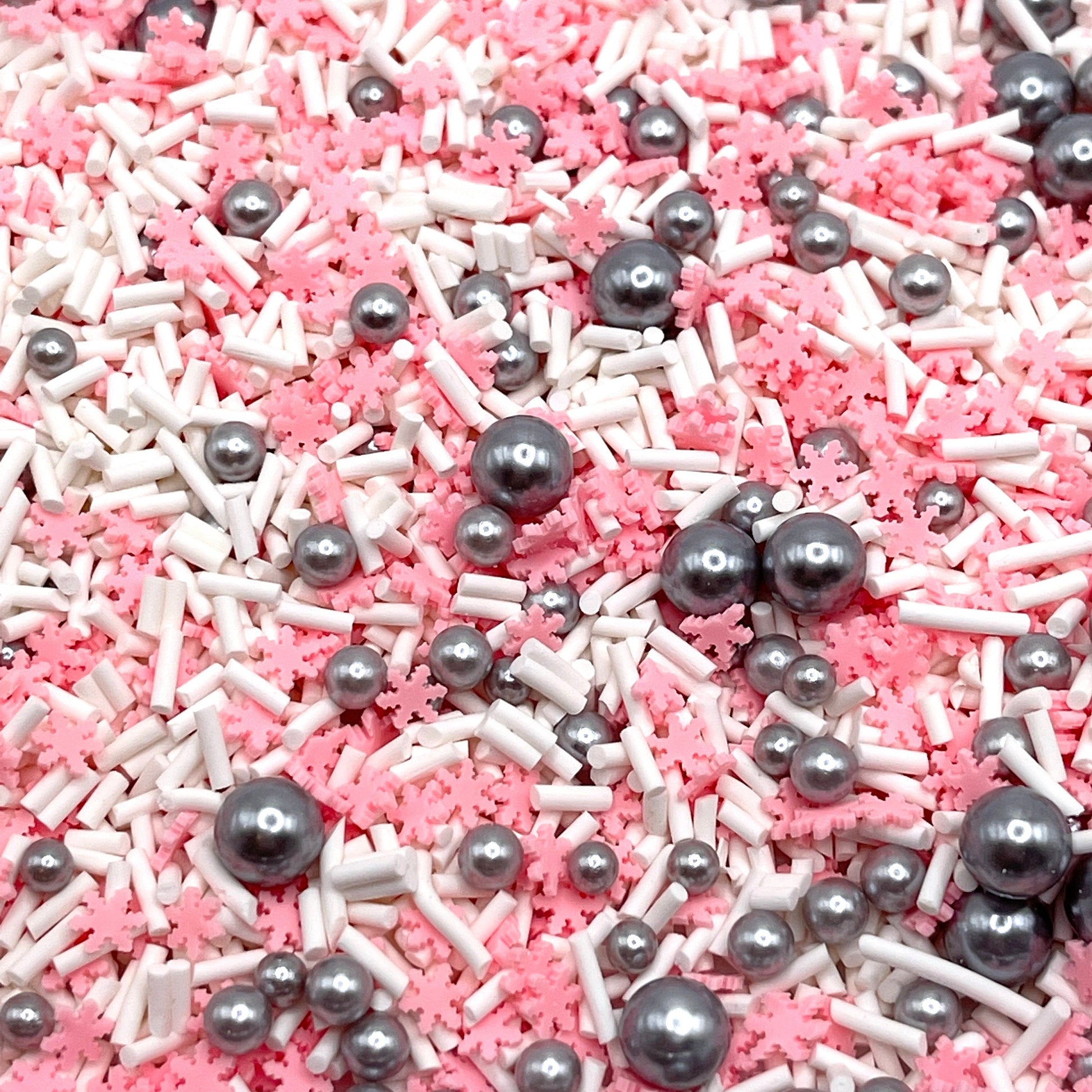 FAKE Pink Snowflake Silver Pearl Polymer Clay Sprinkle Mix (NOT EDIBLE) D8-25