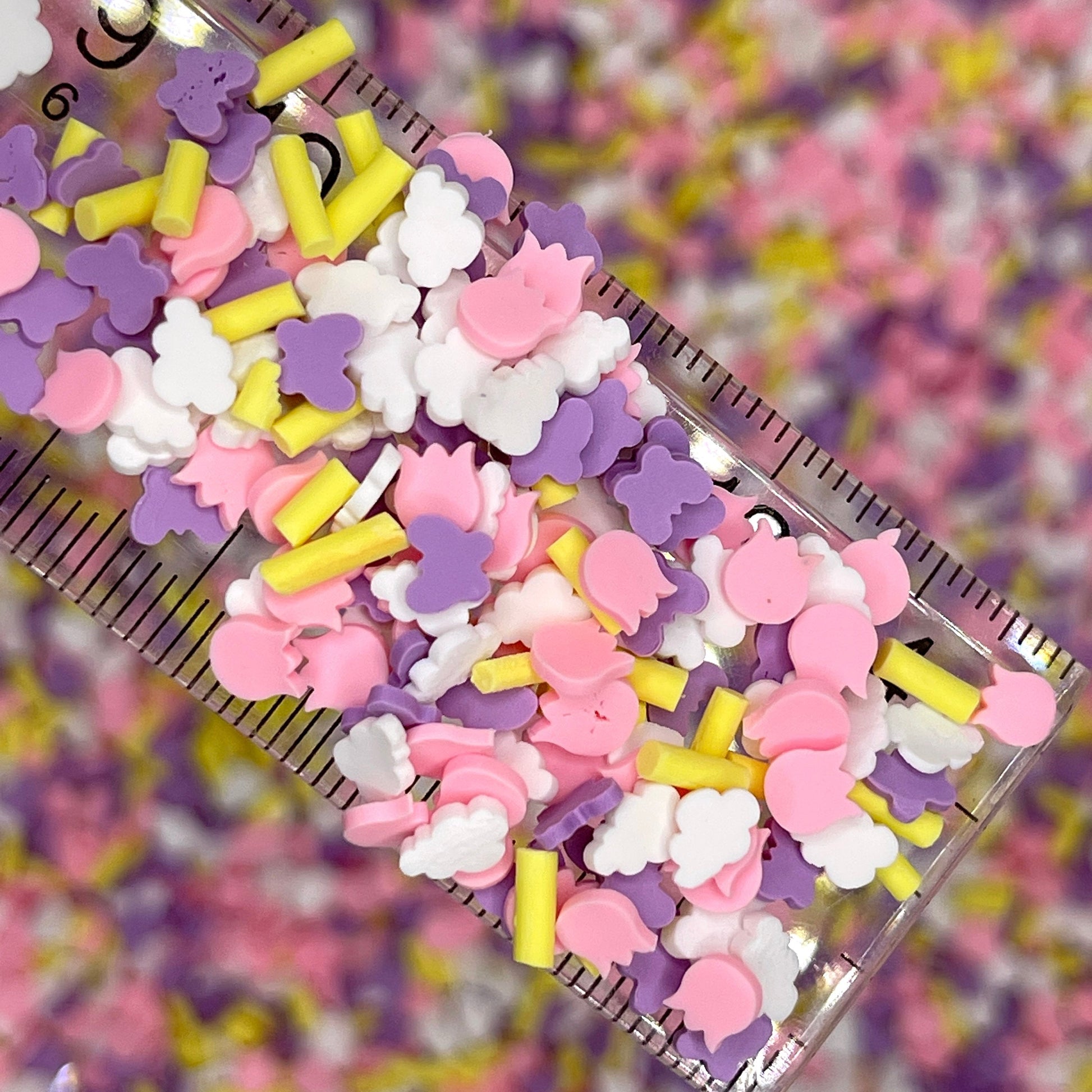 FAKE Pink Tulip Purple Butterfly Polymer Clay Sprinkle Mix (NOT EDIBLE) D6-23